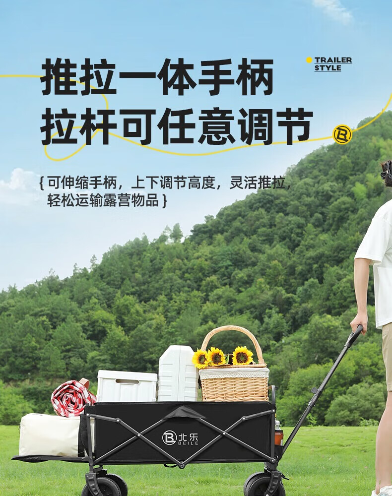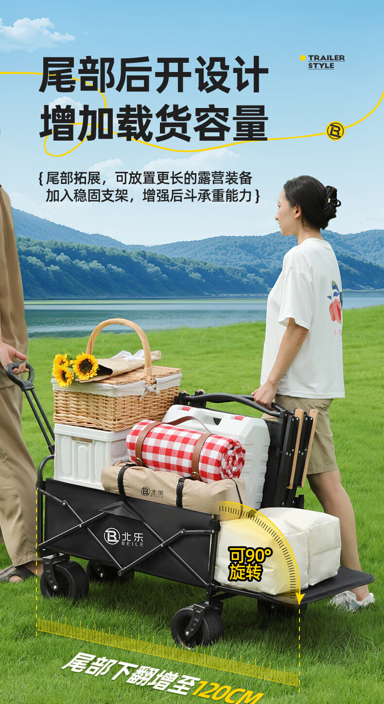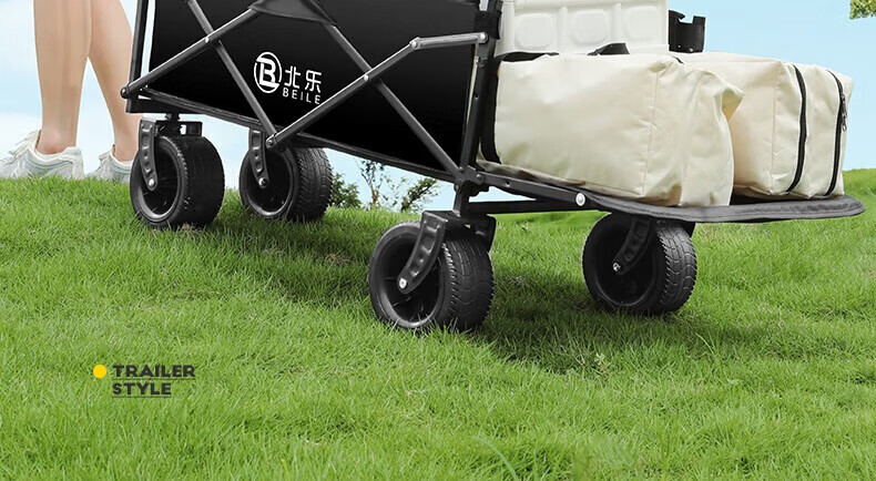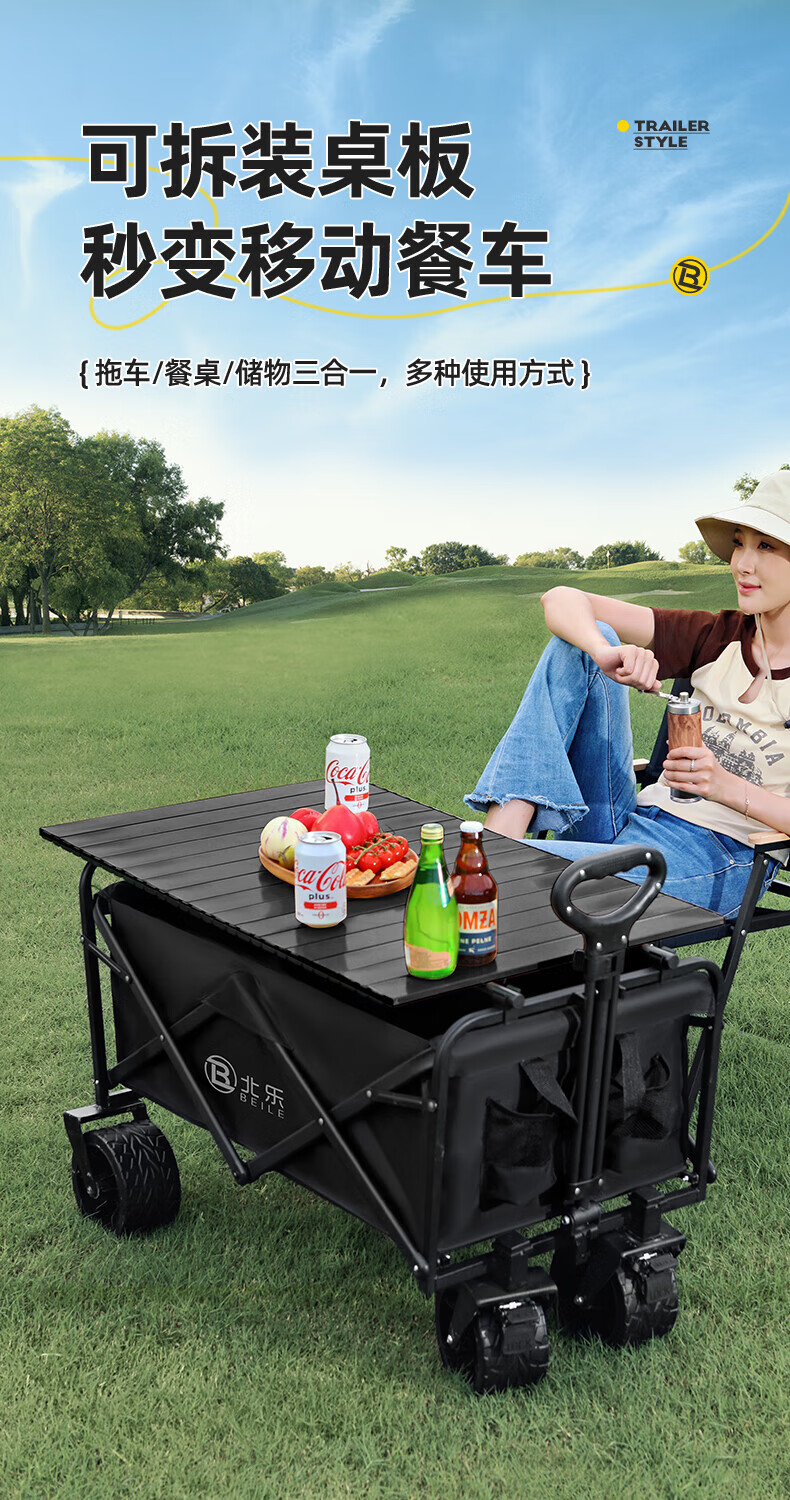 北乐户外露营推车可折聚拢叠摆摊推车野餐车拖车拉杆小拉车桌板营地车 【5寸标准版】+黑色