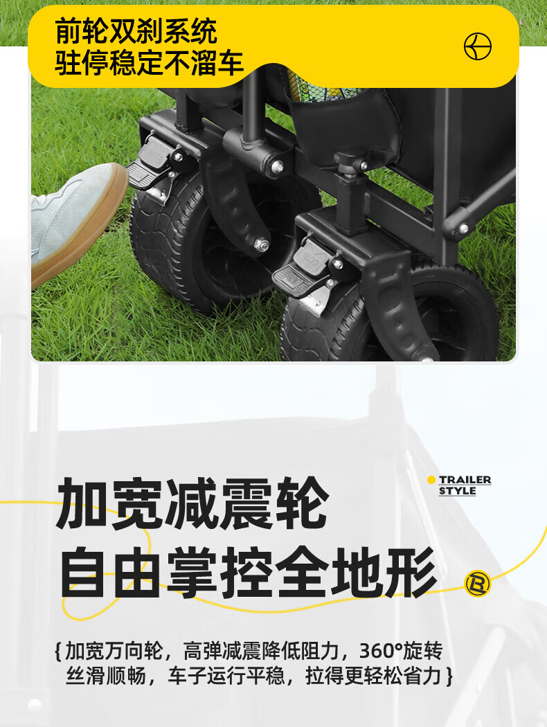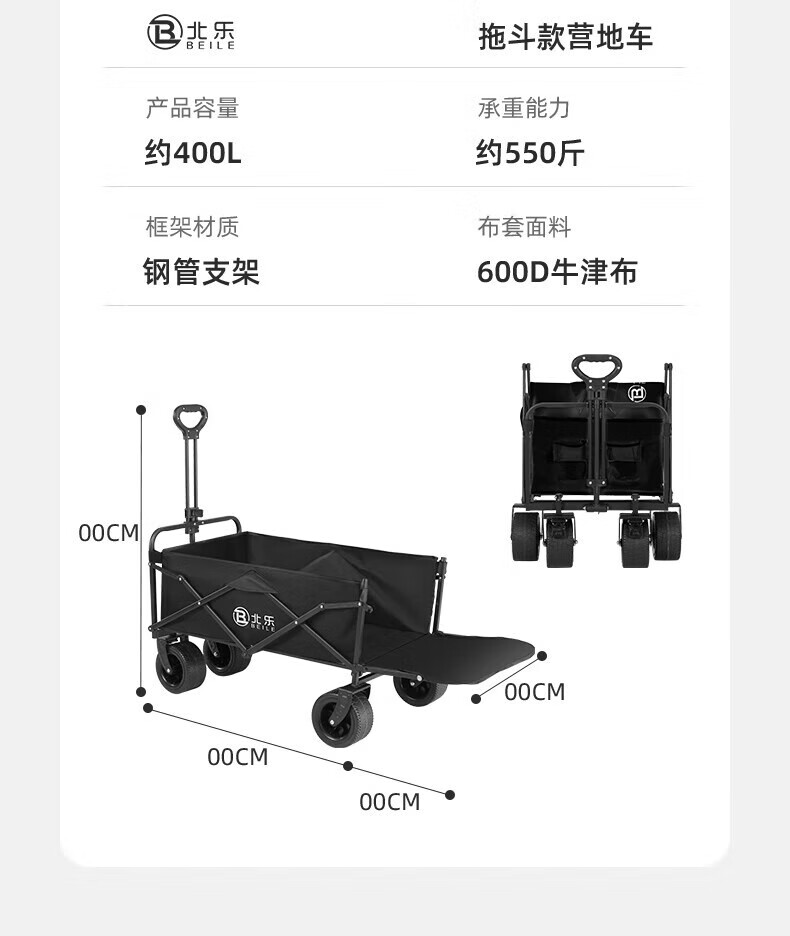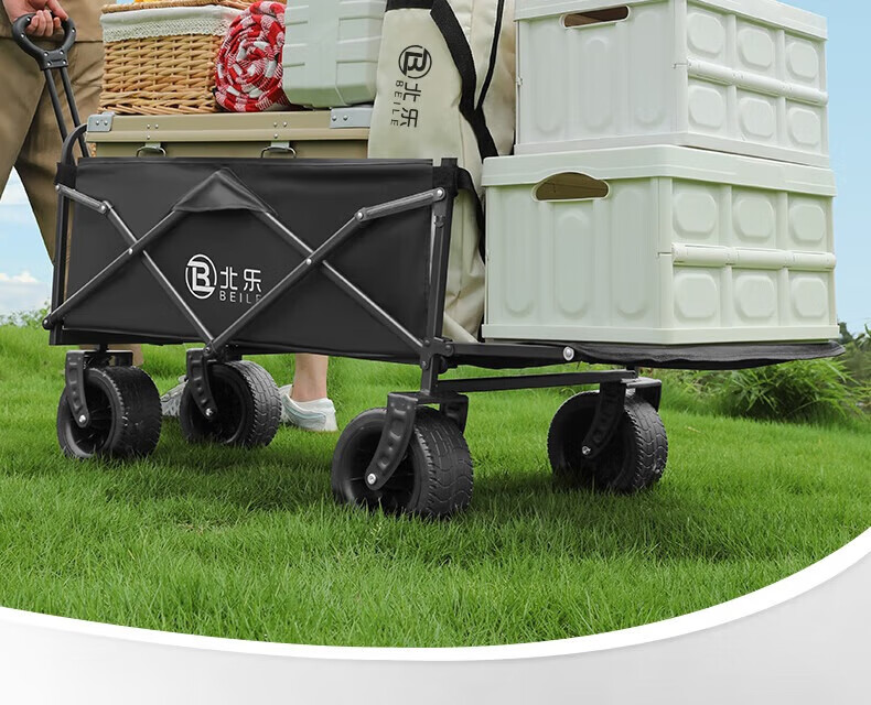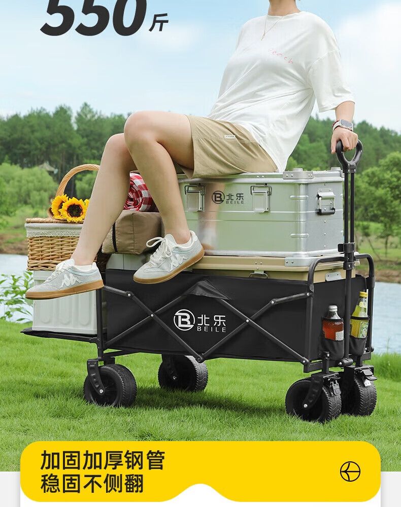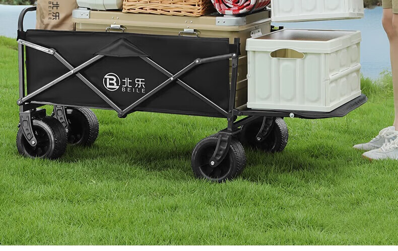 北乐露营车户外可折叠小推车野营野餐车拖车手拉车营地车快递摆摊推车 黑色 300L 有刹车 -聚拢款