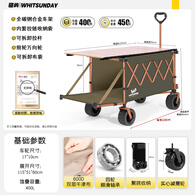 疆屿户外露营车折叠小推车旅行营地野营野餐摆摊儿童可躺野餐聚拢车 珊瑚橙【聚拢越野升级款】+124蛋卷桌面