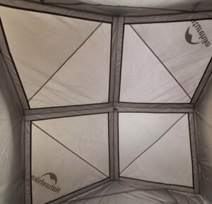 小房子容易搭建,非常方便。 问题,没有开发,中型的带雪裙的门。 导致雨水,会沿着内帐外部,会集中到地垫,和帐篷地布,会渗进来。 所以遇到雨天就悲催了。