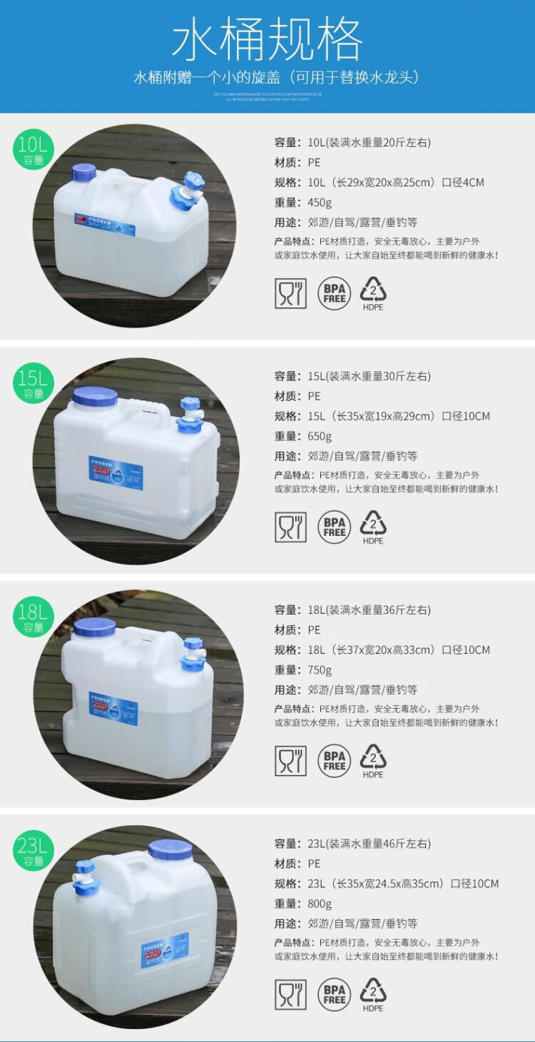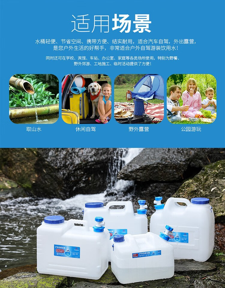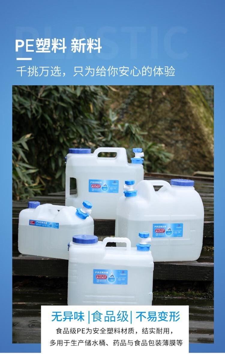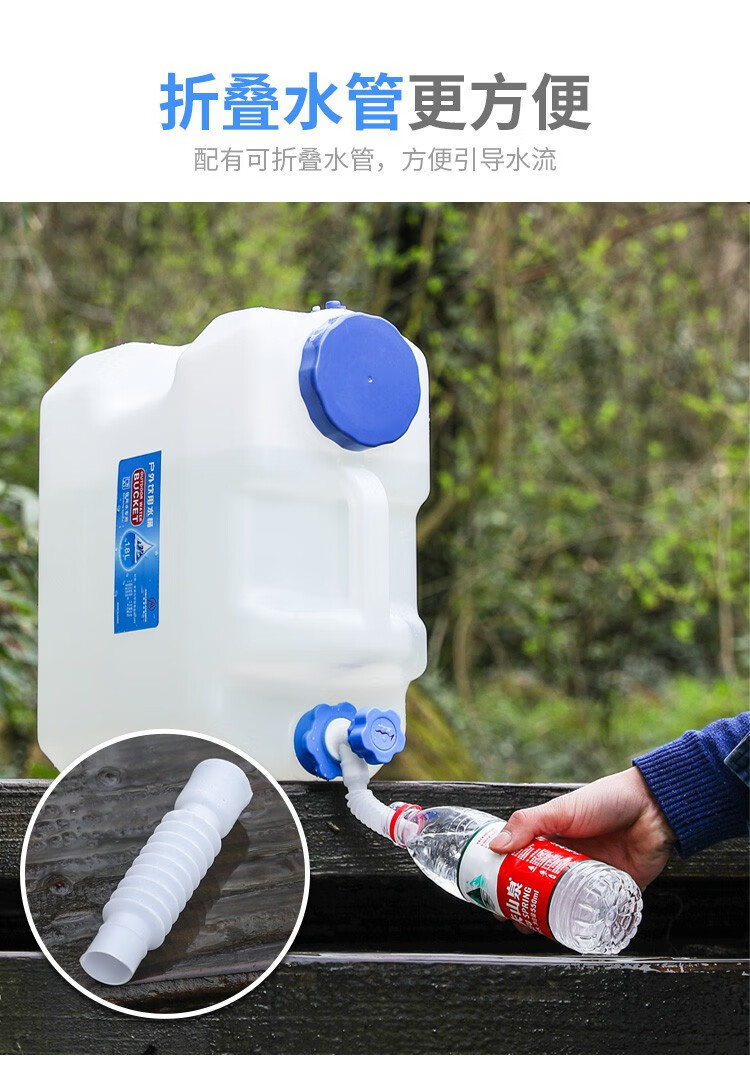 竞洲户外PE蓄水桶带龙头家用茶几纯净矿泉蓄水桶车载自驾游便携装水箱 10升pe矮款茶几水桶