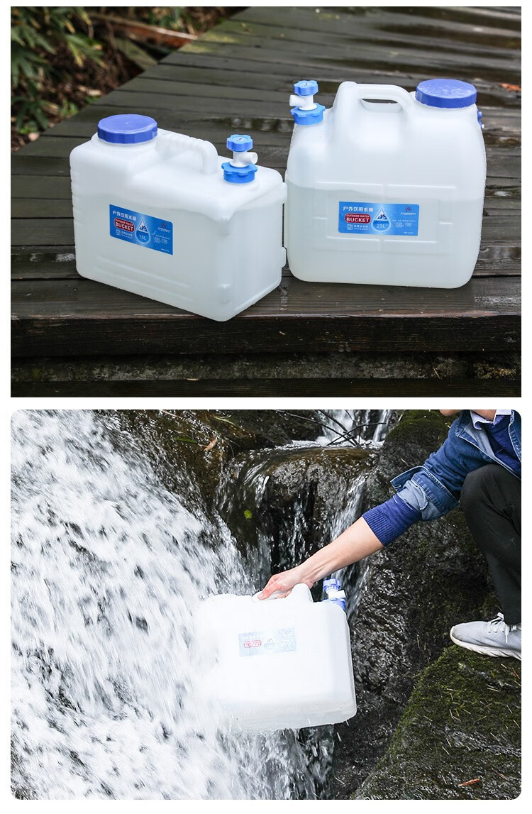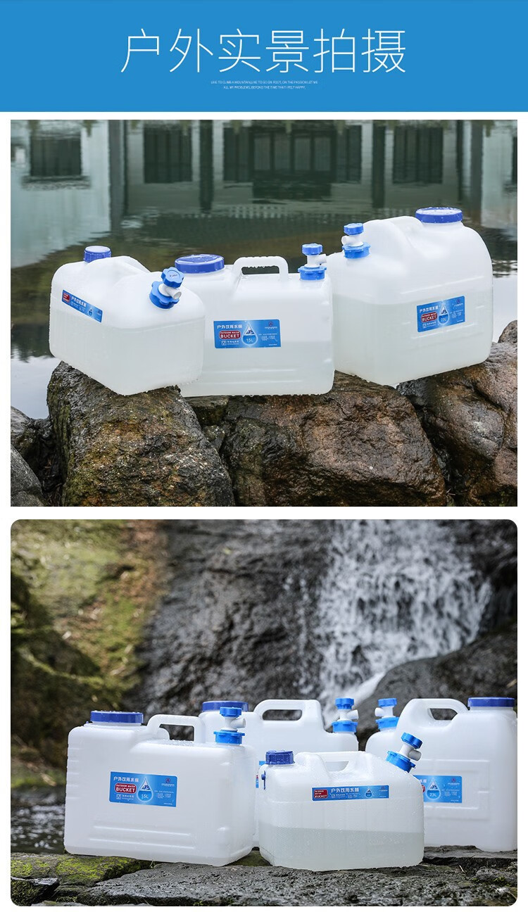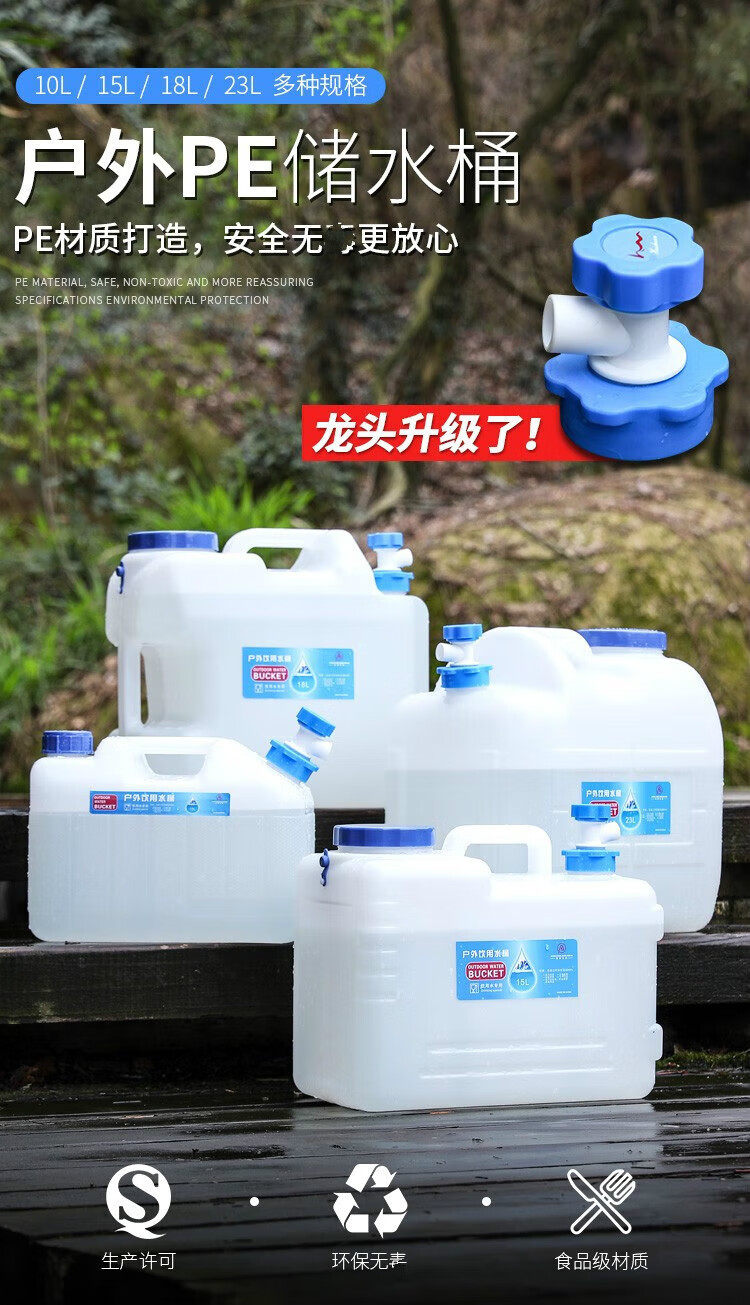 竞洲户外PE蓄水桶带龙头家用茶几纯净矿泉蓄水桶车载自驾游便携装水箱 10升pe矮款茶几水桶
