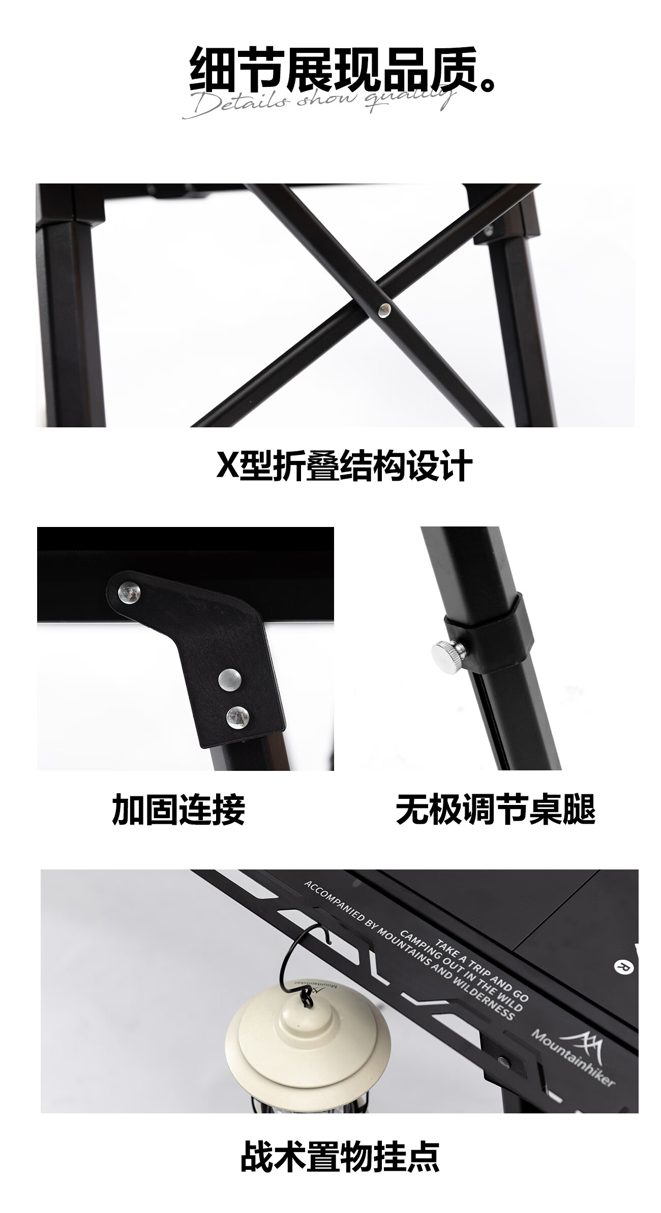 black dog黑狗铝合金折叠桌户外升降桌轻量化模块桌IGT战术露营桌可拓展 半单元板夜幕黑