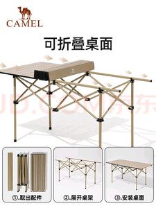 骆驼(CAMEL)户外露营折叠桌碳钢休闲家用烧烤野餐桌子野外折叠桌173SL03012