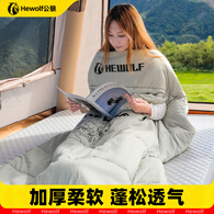 公狼睡袋冬季加厚防寒加宽单人成人秋冬天户外办公室午休加宽车载露营 中蓝色1.3kg一个