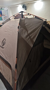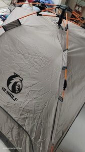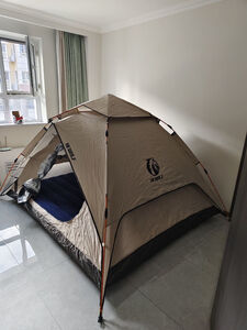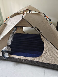 买的公狼HEWOLF帐篷户外防雨过夜露营自动速开折叠专业双层抗风防寒加厚野外野营 4-5人双层涂银卡其+防潮垫240*210的,实收货尺寸缩水了放了充气床测量后尺寸200*170,打开测试了一下,目前看着感觉还可以,等待使用后再追评吧。