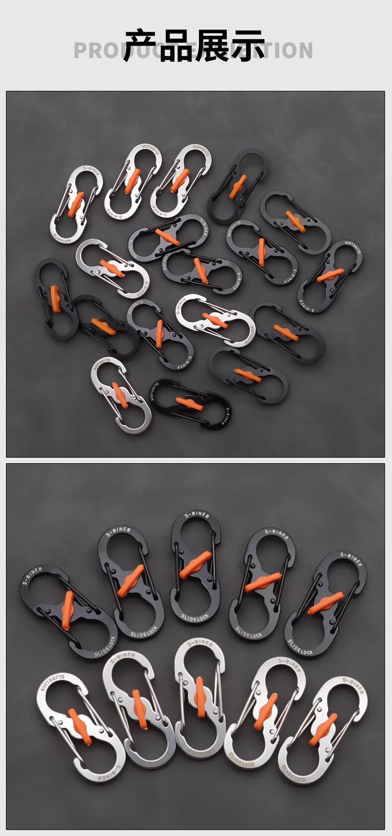 不锈钢8字扣户外带锁挂钩S形登山扣快挂钥匙扣背包拉锁安全扣金属 夜黑发3颗 无规格