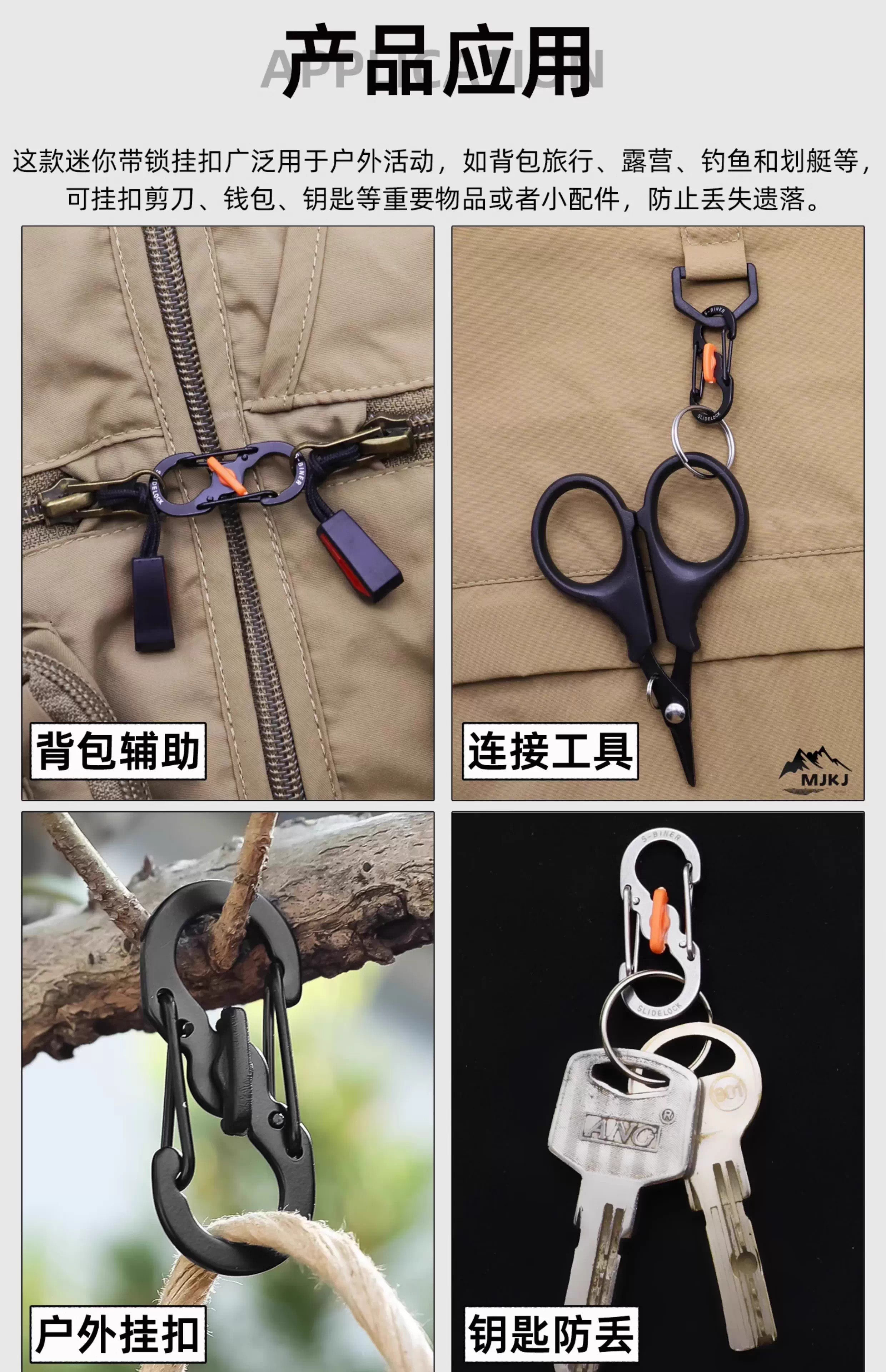 不锈钢8字扣户外带锁挂钩S形登山扣快挂钥匙扣背包拉锁安全扣金属 黑色优选材质【1个装】增强防盗