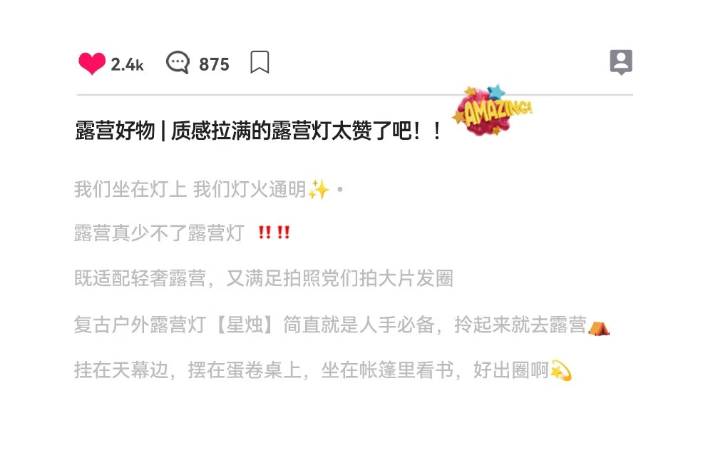 露营灯颜值高,光线柔和温馨✨,续航给力🔋,户外夜行超安心🌙,携带方便又耐用👍。露营灯颜值高,光线柔和温馨✨,续航给力🔋,户外夜行超安心🌙,携带方便又耐用👍。