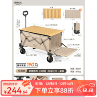 原始人露营推车可折叠户外小拖手推营地车可躺野餐野营旅行遛娃聚拢拉车 190L 卡其【桌板套餐】-可后开