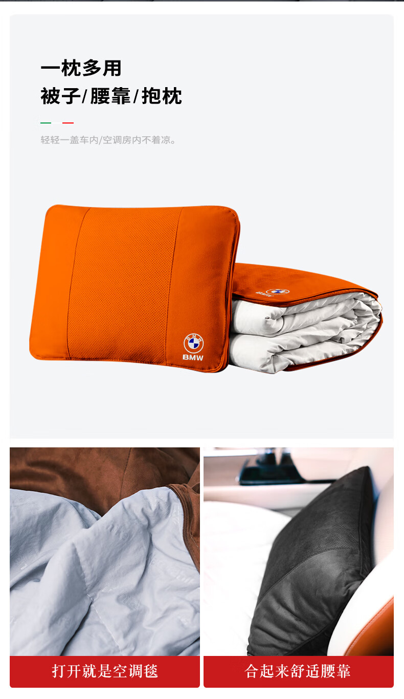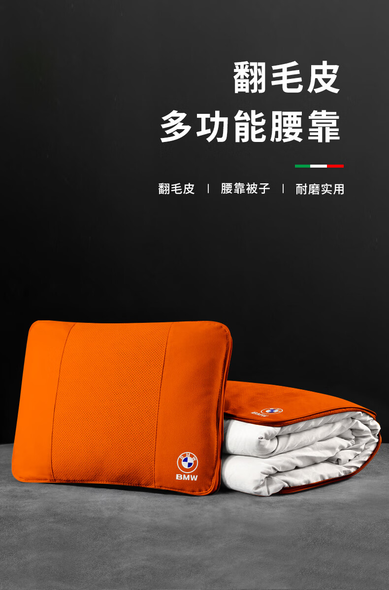DBLBV宝马抱枕被3系5系X3车载多功能靠垫翻毛皮空调被子两用车内饰用品 宝马【四季被】 咖色腰枕被 1个