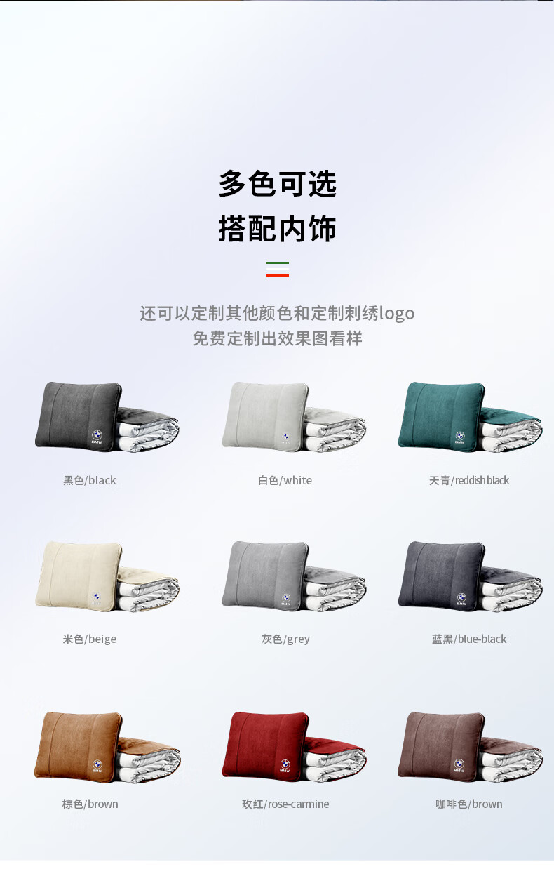DBLBVAlcantara汽车抱枕被子两用折叠车内保时捷车载后排奔驰宝马睡觉 【四季被】 棕色腰枕被 1个 不带标纯色