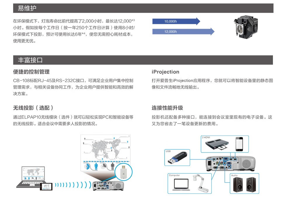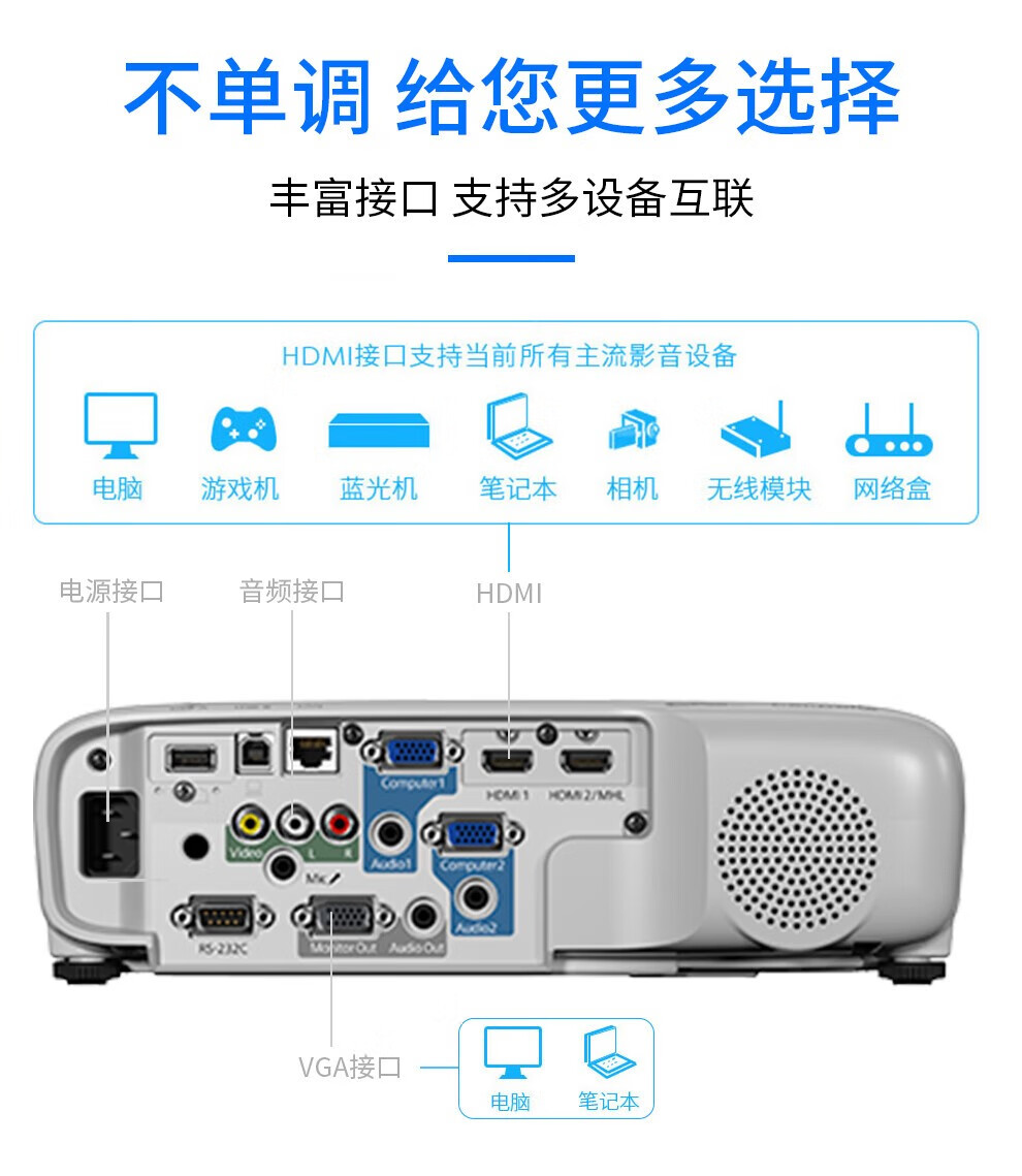 爱普生CB-FH52高清4K无线3LCD商务办公家用客厅智能1080P教育工程投影仪 CB-U04(3000流明 1080P全高清