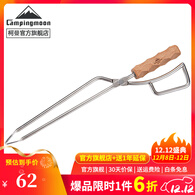 CAMPINGMOON柯曼火钳不锈钢户外露营焚火钳柴禾木炭烧烤钳榉木手柄科曼火钳 【不锈钢焚火钳】