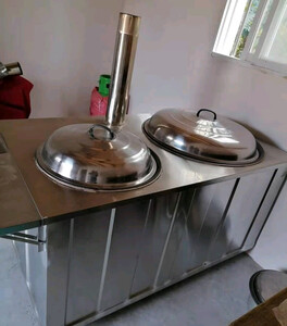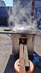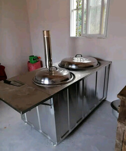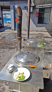农村家用柴火灶新款烧木柴户外304不锈钢无烟柴火灶加厚水池温水 单灶80CM+下水池+温水锅