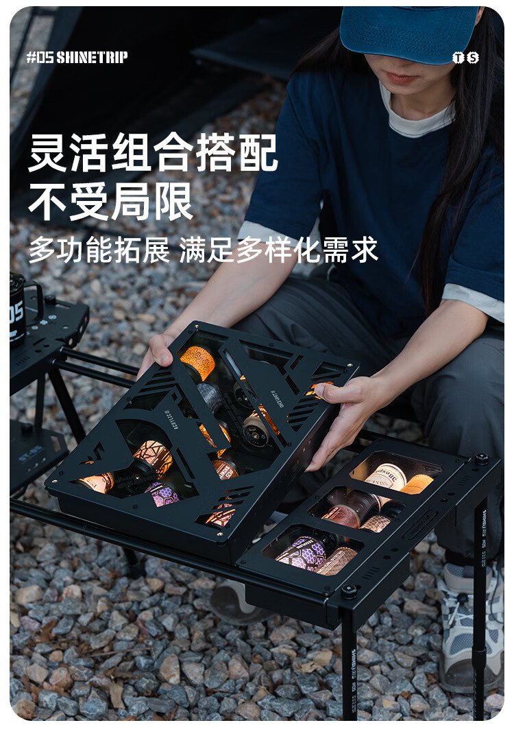 山趣(ShineTrip)户外露营滑板桌多功能便携收纳置物架可折叠IGT单元组合桌子 滑板桌+层板+底板套装-主图款