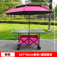 加大露营车摆摊手推车升降桌折叠夜市小吃车大容量地摊车户外推车 双底-粉车+167*60黑桌+粉大伞