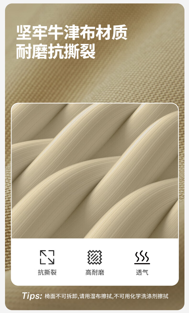 最近入手的这款月亮椅真的太让我惊喜了!椅子展开超方便,几秒钟就能组装好,完全不用工具。加厚的牛津布面料结实又透气,承重力很强,坐上去包裹感十足,腰部也有很好的支撑,窝在上面看书、刷剧超舒服。底部防滑设计很贴心,放在木地板或瓷砖上都稳稳当当。折叠后小巧轻便,收纳不占空间,周末露营带着也毫无压力。细节做工精致,没有线头,金属支架牢固耐用,性价比超高,强烈推荐给大家!