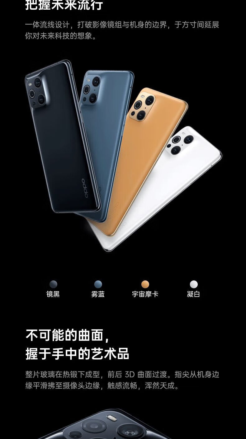 OPPOFindx3pro曲面屏幕指纹解锁骁龙888处理器5g全网通手机 Findx3pro雾蓝 12GB+256GB 全网通5G