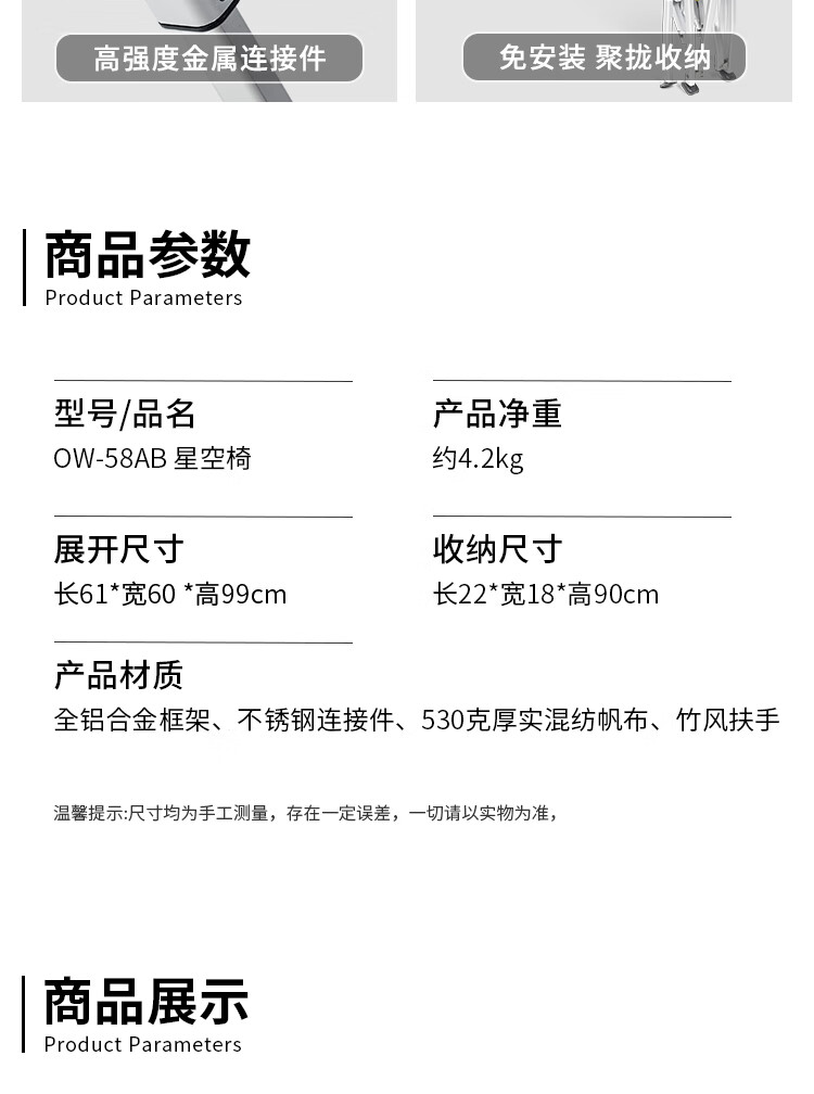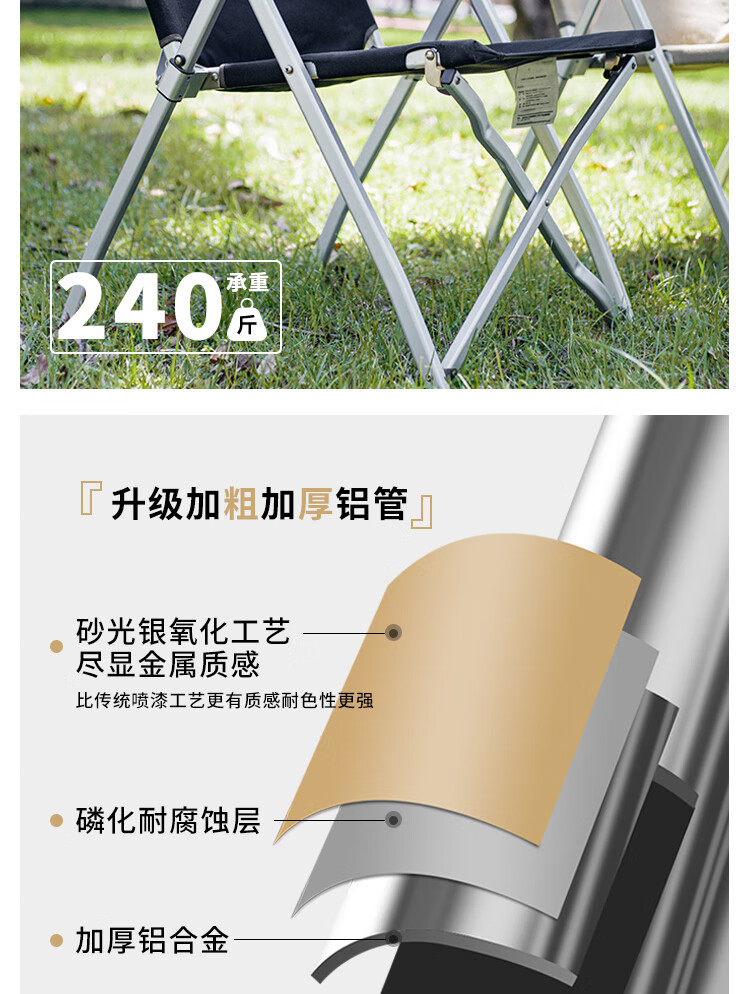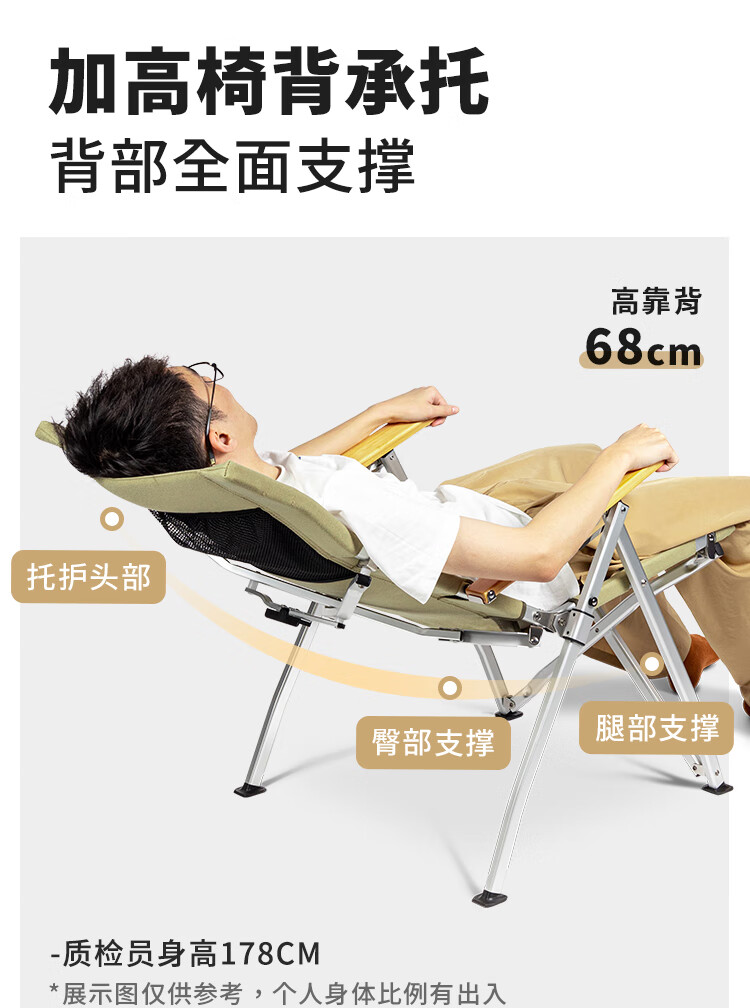 身高175cm,体重186斤,坐着左右不挤,四档调节可坐可躺,店家还赠送了头枕,坐躺都很舒服。重量也合适,铝材质的,拿手里比钢管材质的轻。
