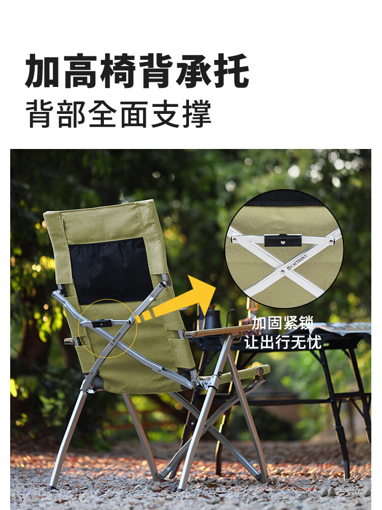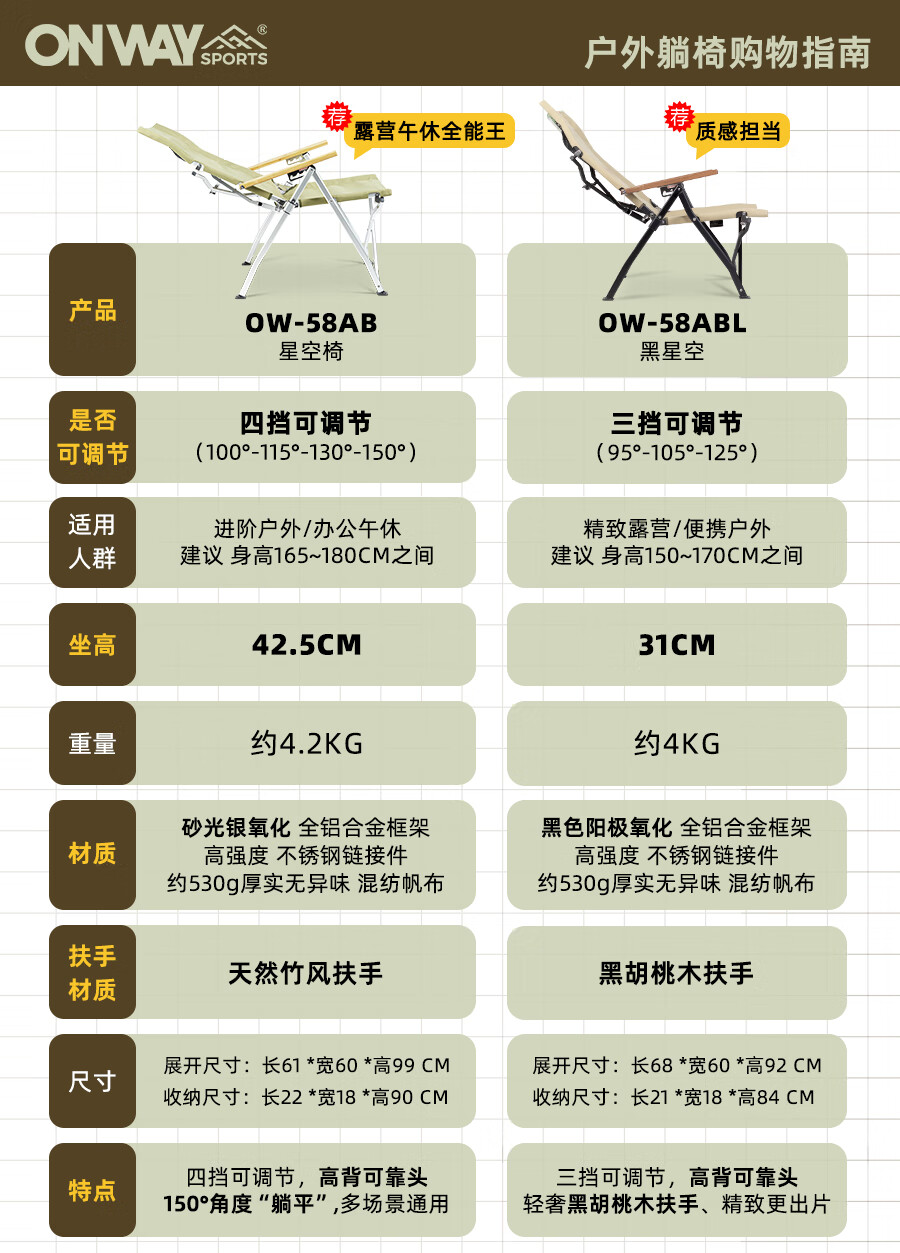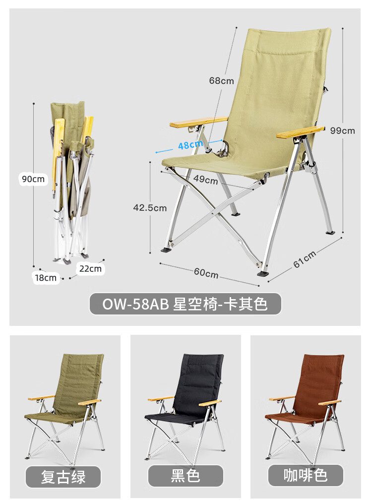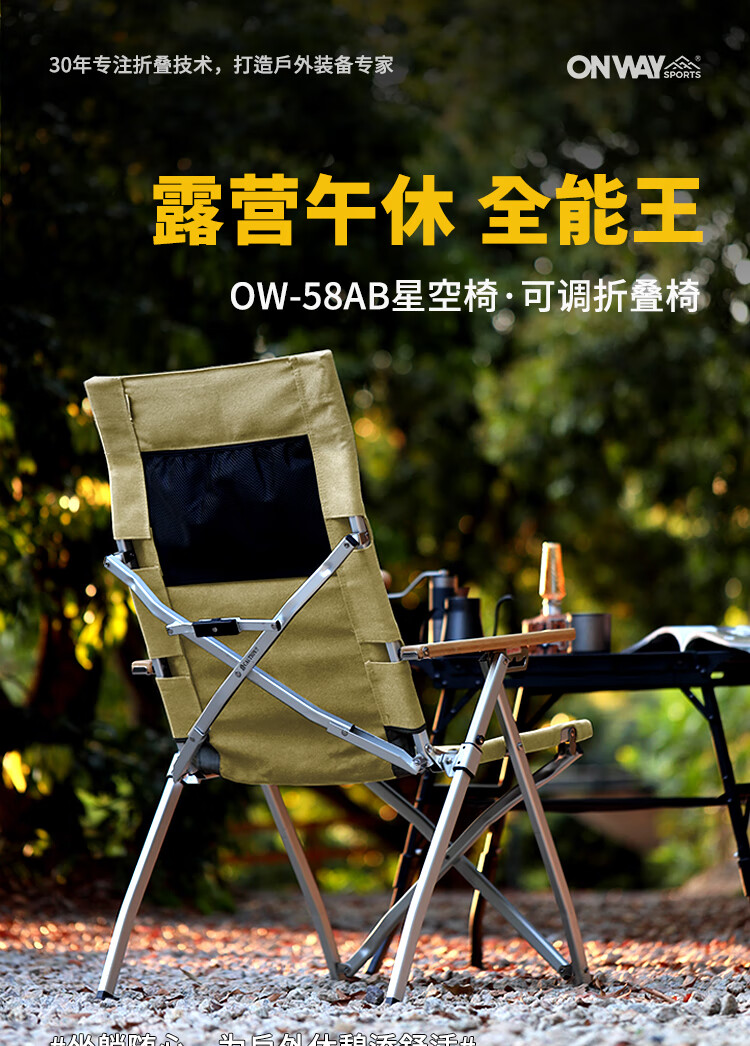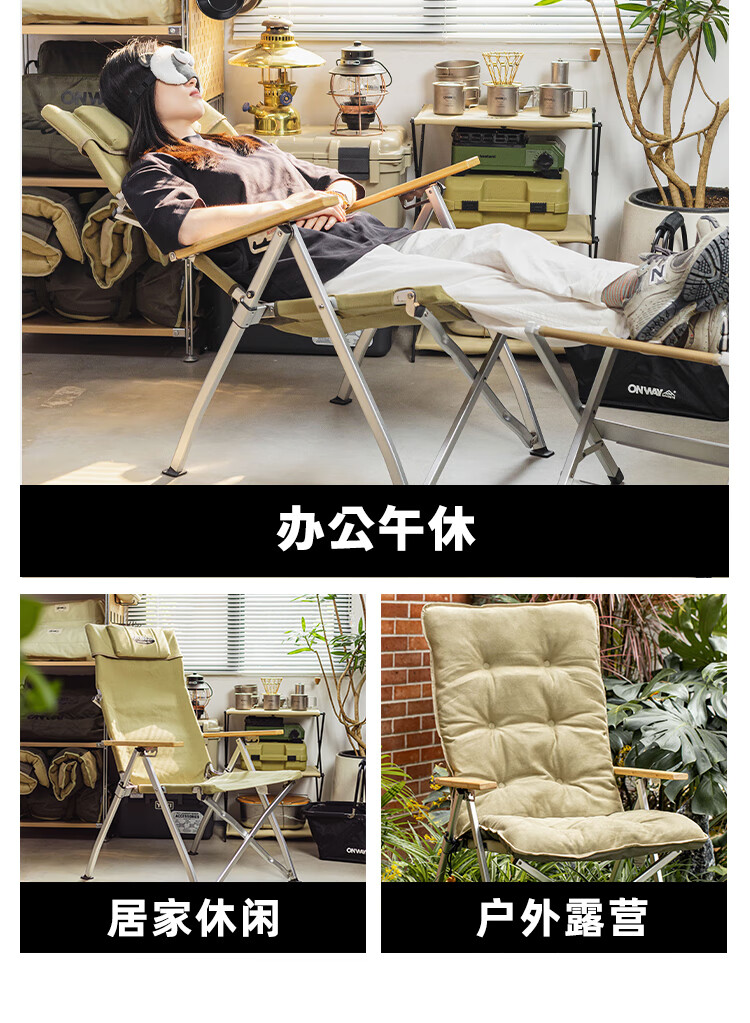 OnwaySports黑星空58ab高背海狗椅户外折叠露营椅子钓鱼午睡陪护阳台午休躺椅 头枕组合-卡其色(黑星空)