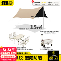 探险者天幕户外黑胶露营遮阳防晒公园聚会野营便携防雨八角蝶形遮阳棚 15㎡【黑胶天幕+桌椅五件套+推车】