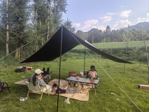 经过反复筛选最后选择了这款天幕帐篷,收到后迫不及待的用了一下,最后感觉我的选择没错,使用效果非常满意,搭建简单,空间很大,遮阳效果也非常好,总之这是一款值得拥有的露营装备.