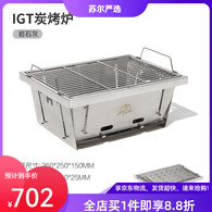 牧高笛(MOBIGARDEN)IGT炭烤炉户外露营围炉煮茶小型烤肉炉不锈钢折叠烧烤架 岩石灰