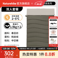 Naturehike挪客灵动信封带帽睡袋成人户外露营秋冬防寒保暖可拼接双人被午休 冬季双人上下拼接/2~5℃/墨鸢350