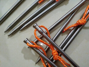 普通铝合金地钉换成钛地钉以后扎帐不怕地形恶劣了