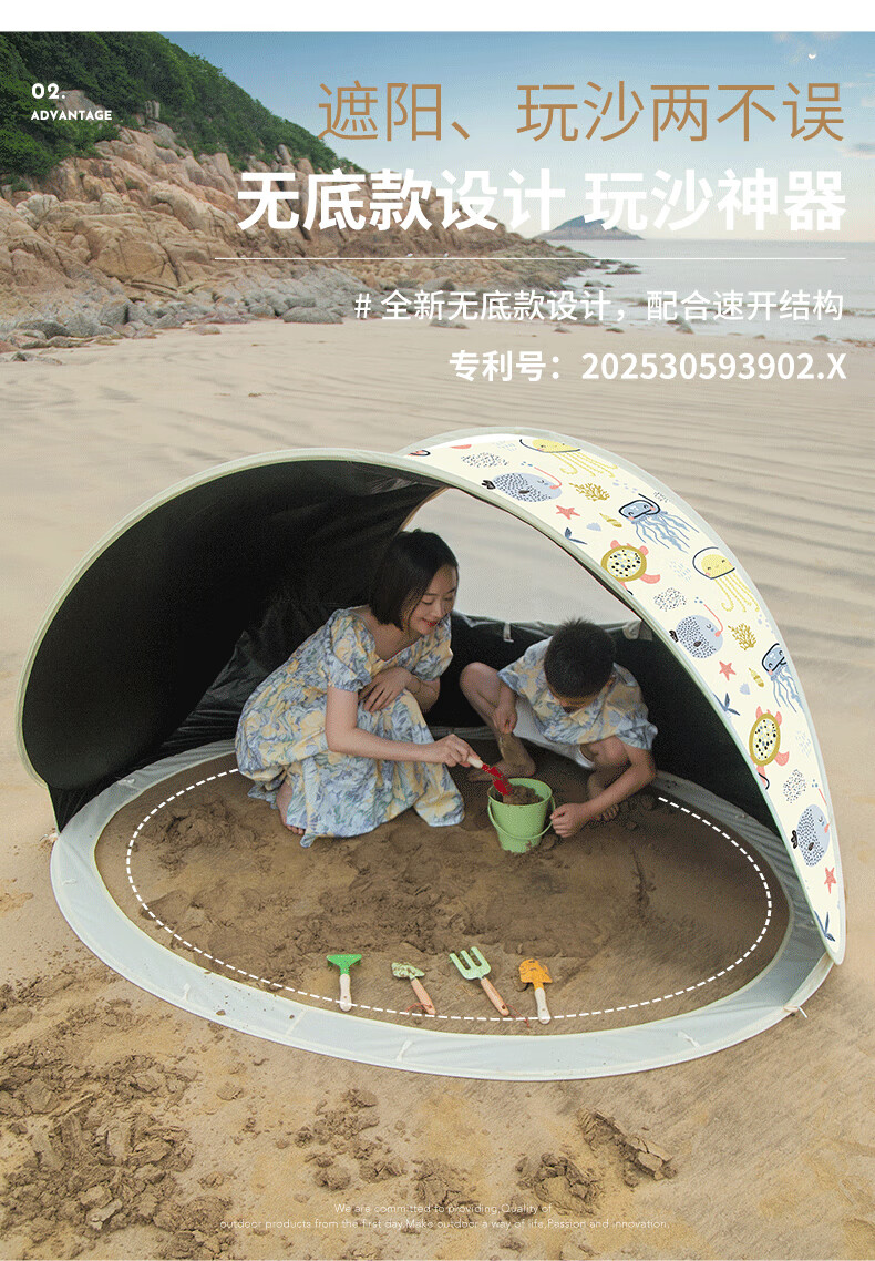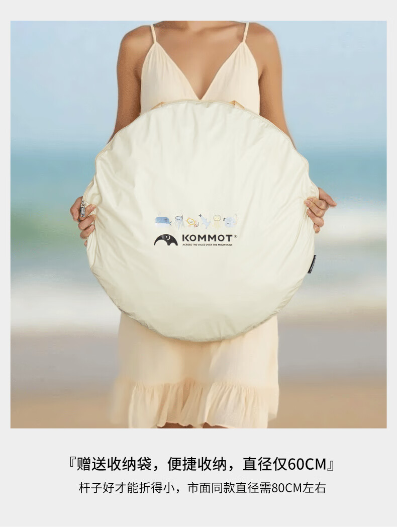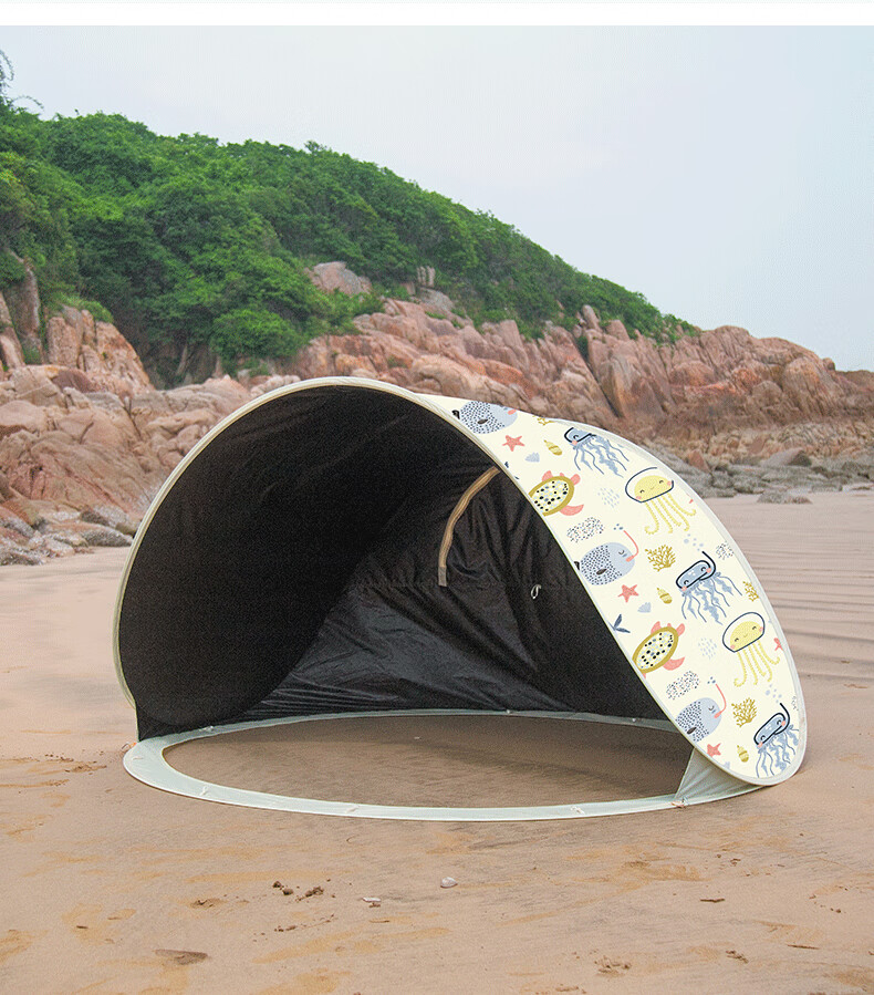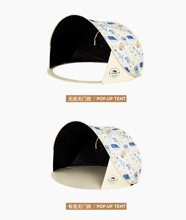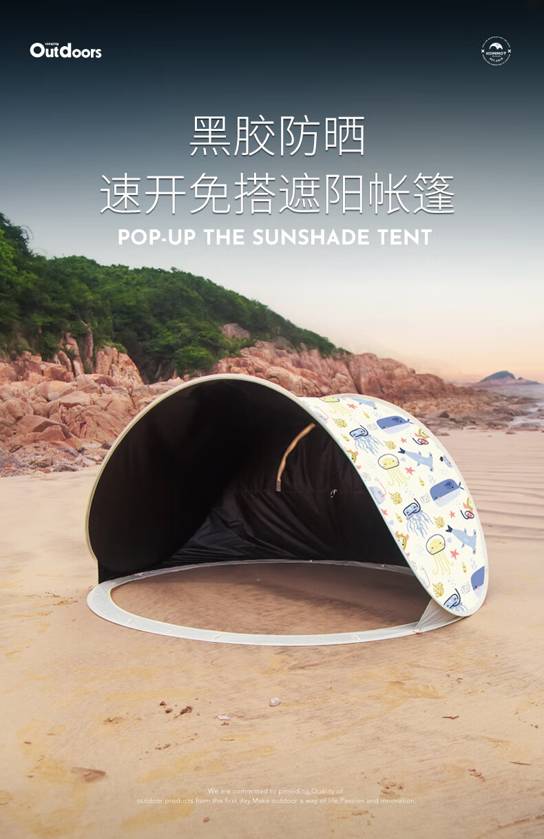 kommot牧彻户外帐篷便携式沙滩海边全自动防晒儿童折叠简易沙滩天幕 无门无底【黑胶防晒】