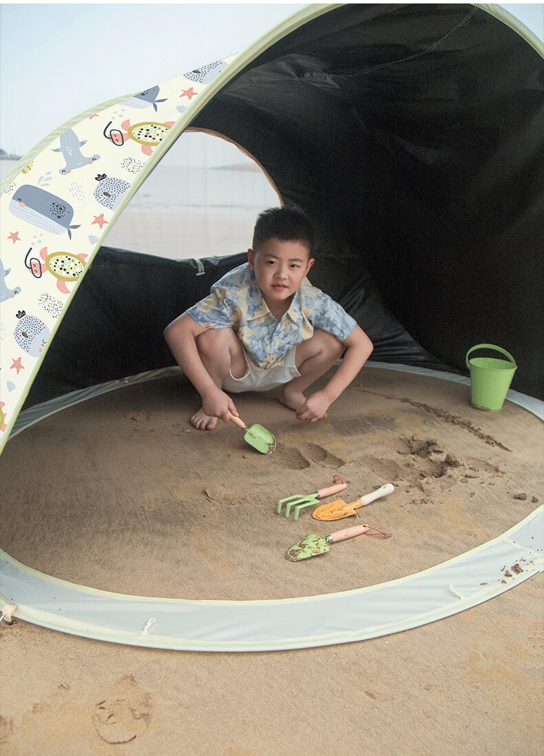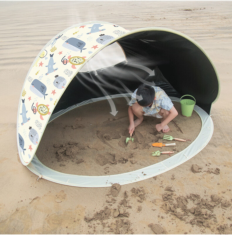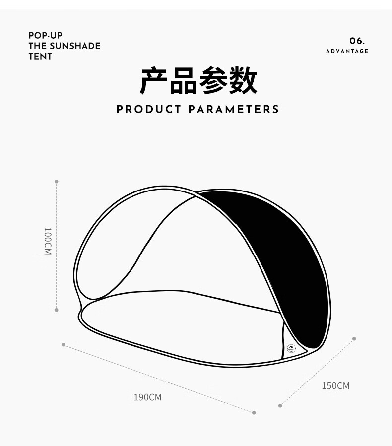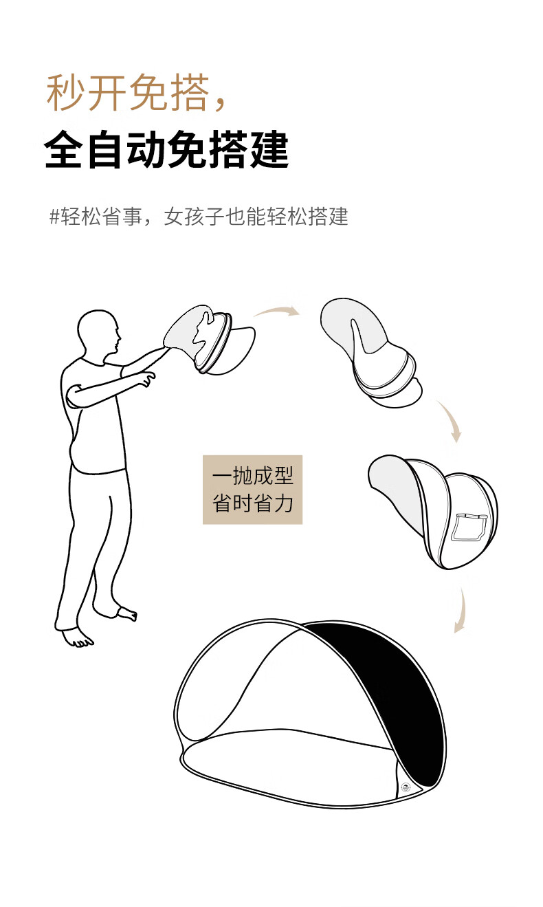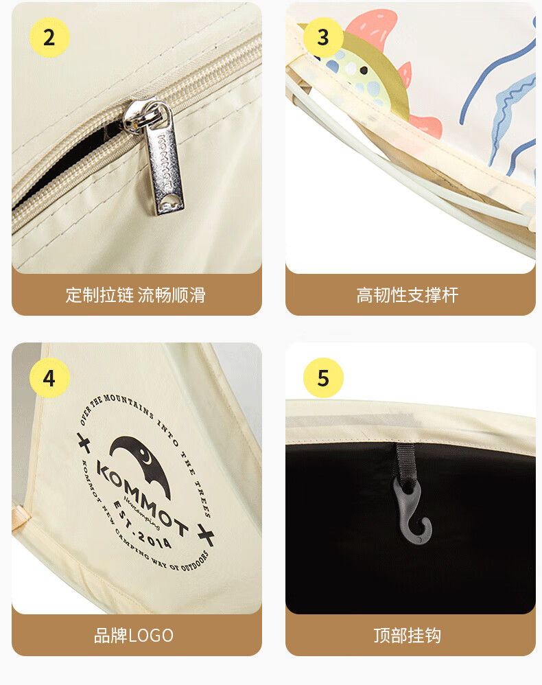 kommot牧彻户外帐篷便携式沙滩海边全自动防晒儿童折叠简易沙滩天幕 无门无底【黑胶防晒】
