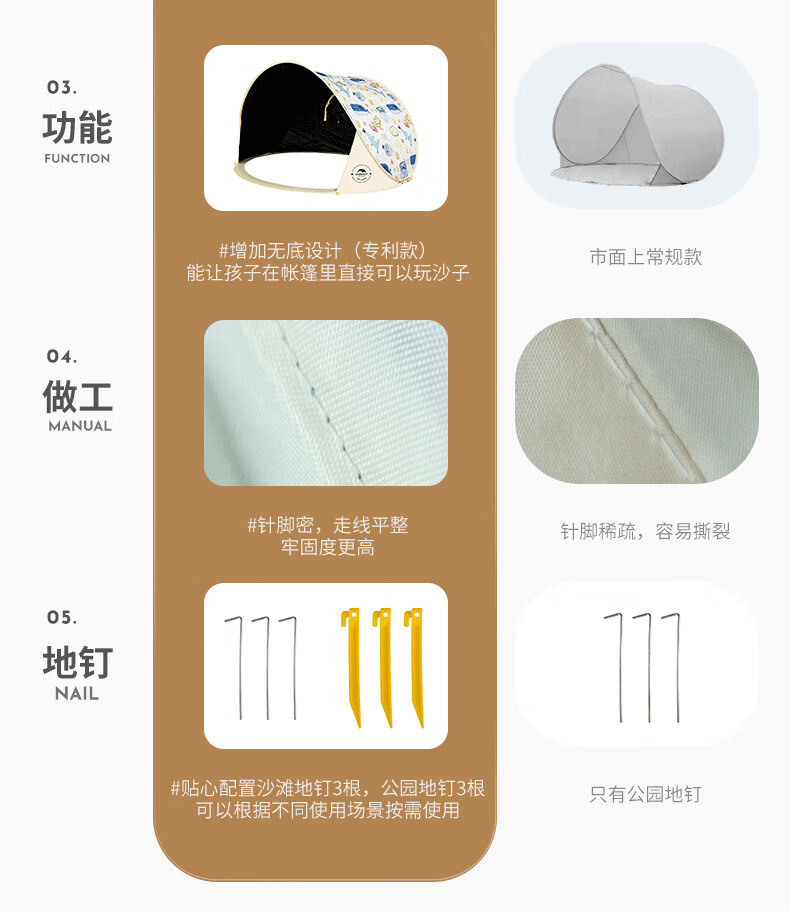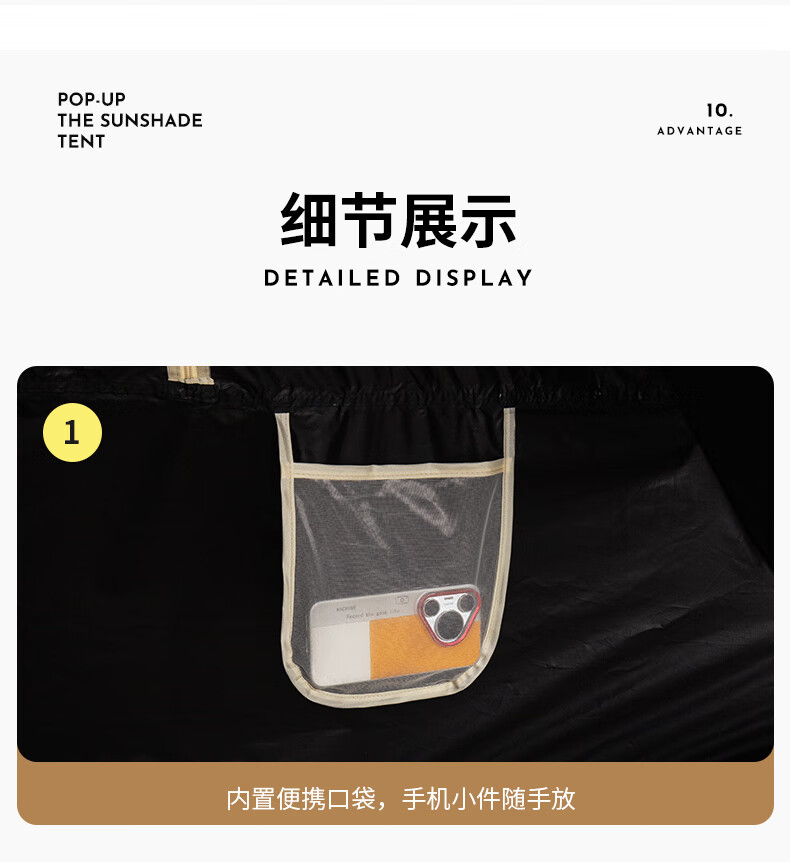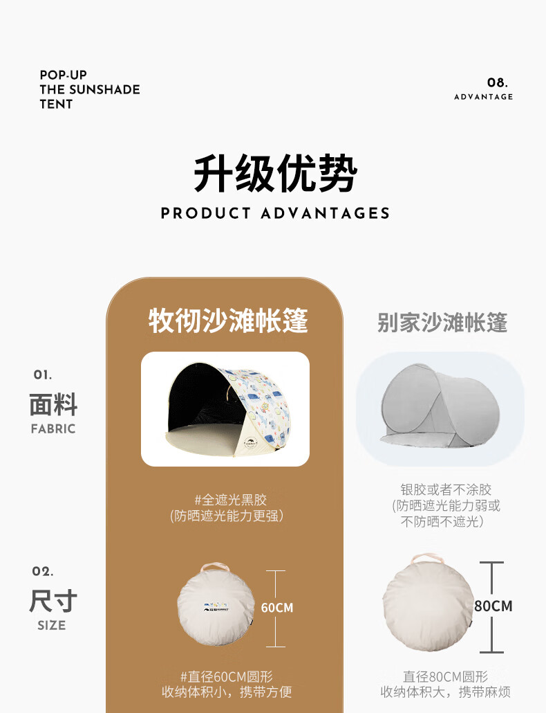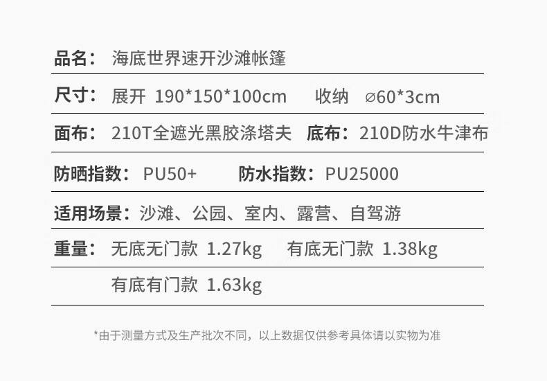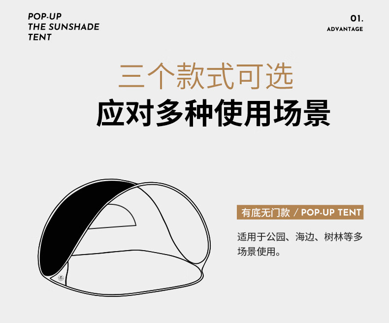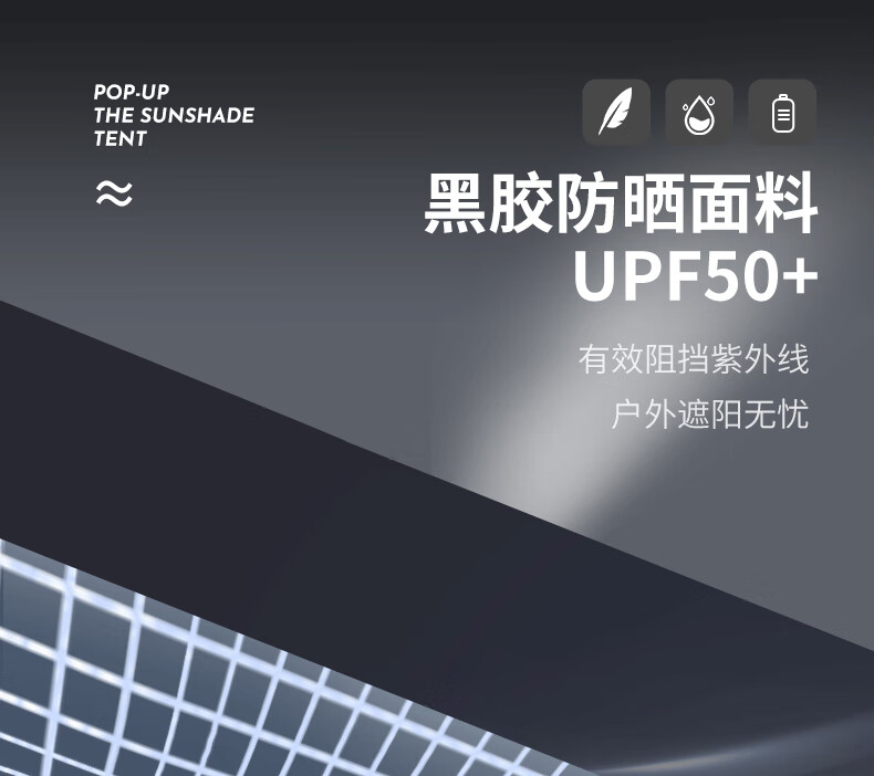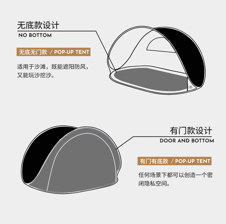 kommot牧彻户外帐篷便携式沙滩海边全自动防晒儿童折叠简易沙滩天幕 无门无底【黑胶防晒】
