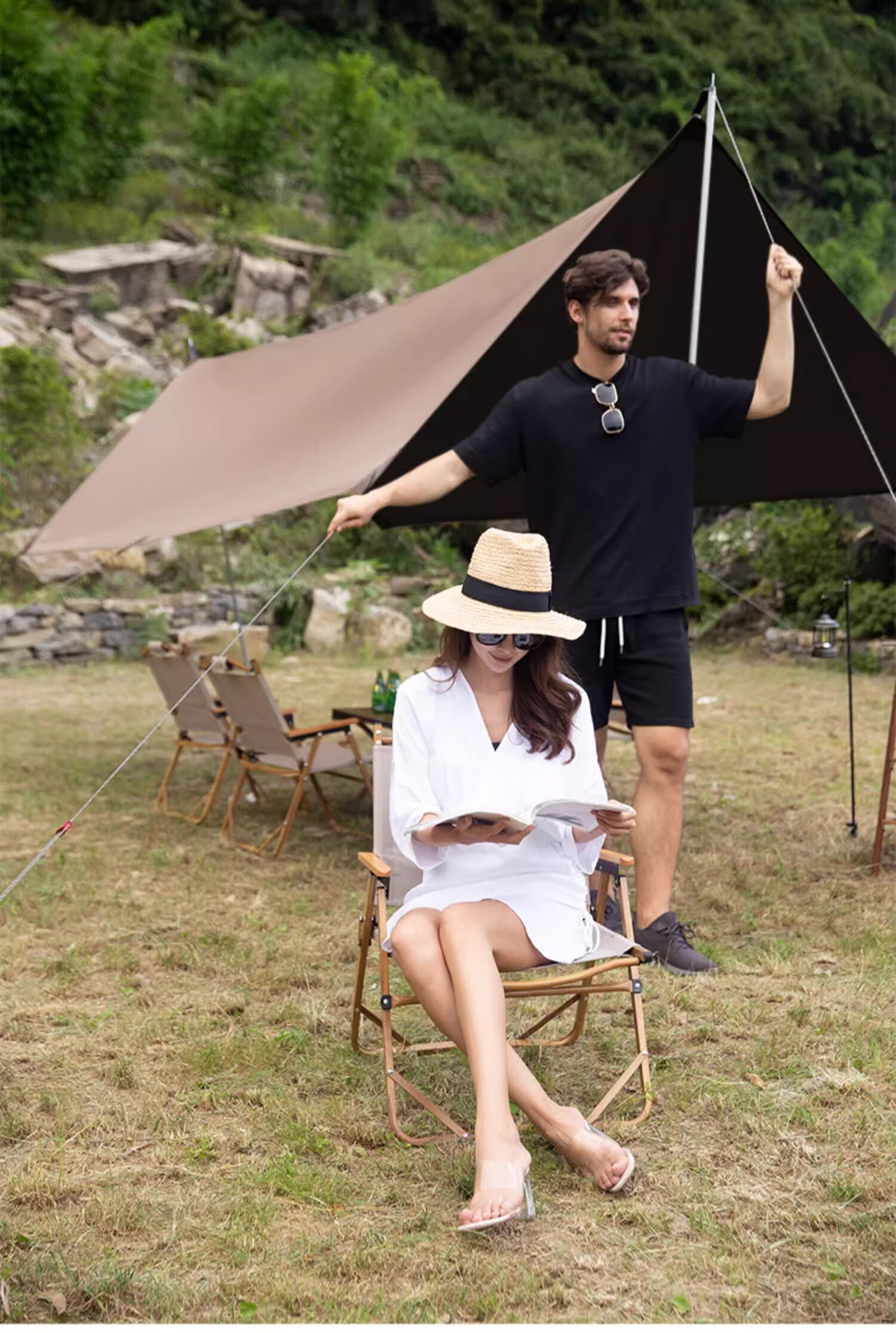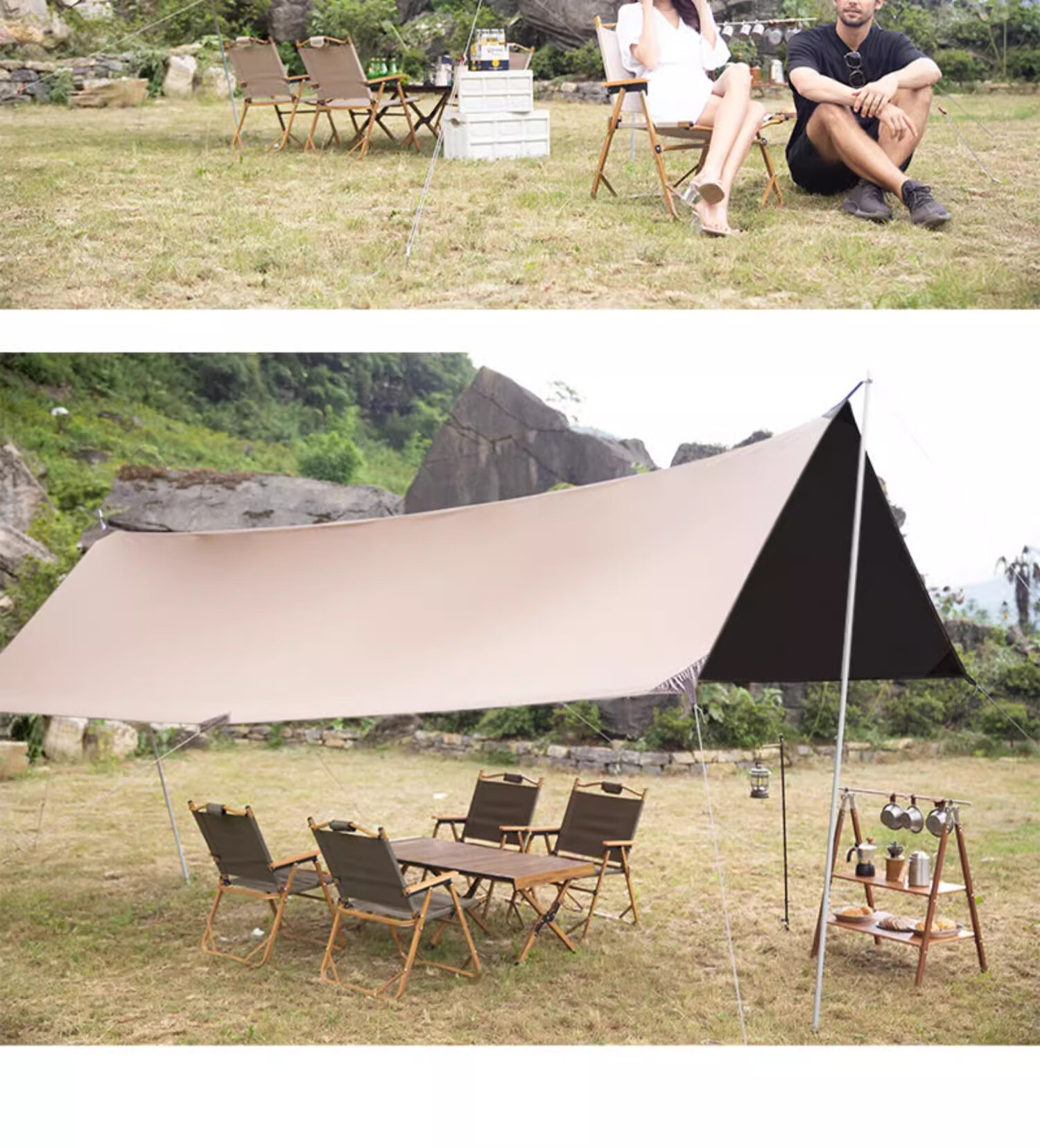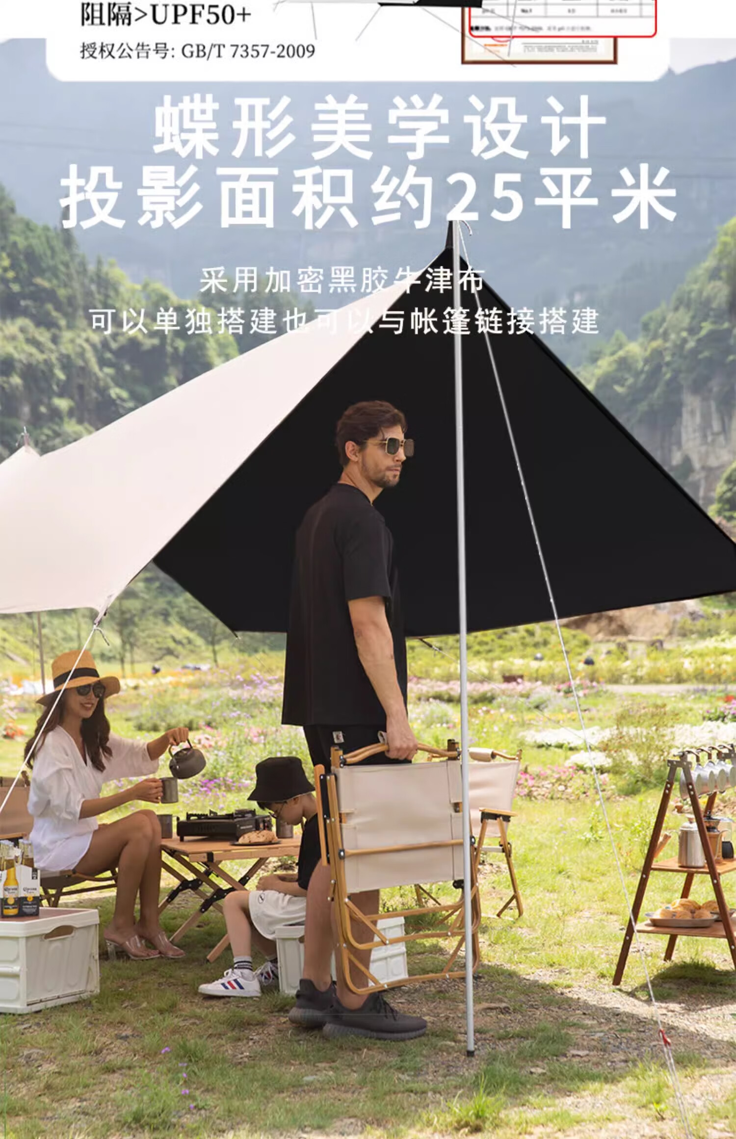 牧高笛(MOBIGARDEN)俊庭黑胶天幕 户外露营蝶形防晒遮阳布防雨大空间黑胶天幕 俊庭黑胶PO520天幕*1+月亮椅*4+碳钢蛋卷桌L套餐