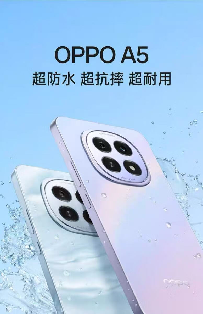 OPPO A5 新品5G手机 IP69满级防水 360°抗摔 6500mAh耐用大电池 AI大模型 选购【24期/免息】 云母蓝 12GB+256GB 官方标配