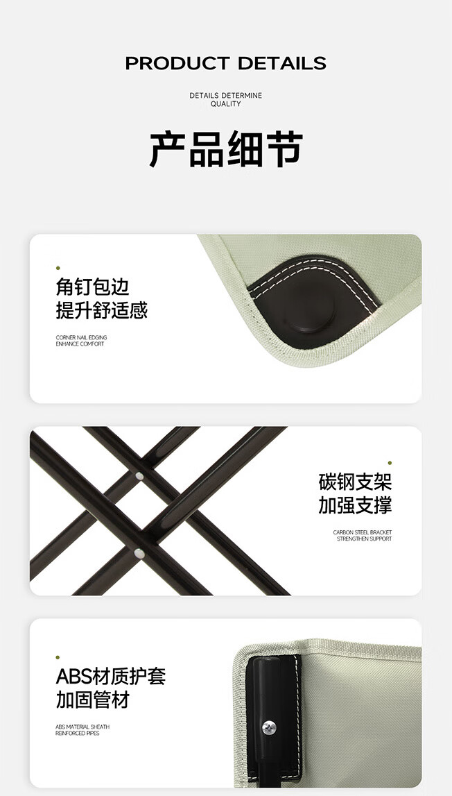 做工很好,结实稳固,布料也很结实耐用,坐着也很舒服,展开收纳都很方便,一只手就能做到,很美观大方,这个价位买到的极致性价比
