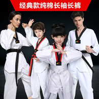 竞派儿童跆拳道服纯棉长袖成人男女全棉跆拳道初学者训练舒适柔软透气 纯棉白色长袖跆拳道服 110码