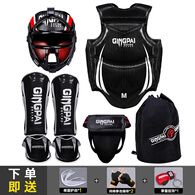 竞派搏击护具儿童散打护具全套成人格斗训练防护拳击头盔护胸护腿套装 全封闭头盔护具黑色5件套 M