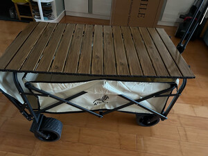 Aoran 露营推车可折叠户外手推野餐车营地拖车拉杆小拉车桌板野营车 咖色【静音实心万向轮】