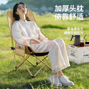 Aoran户外折叠椅子露营椅子便携靠背钓鱼凳子休闲月亮椅沙滩躺椅 六层夹棉-卡其高靠背+特级布料
