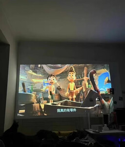 开机直接投墙上就能看电影了,在家里躺着看电影,感觉很棒,还比手机要护眼一些,眼睛看着不难受,画质很清楚。