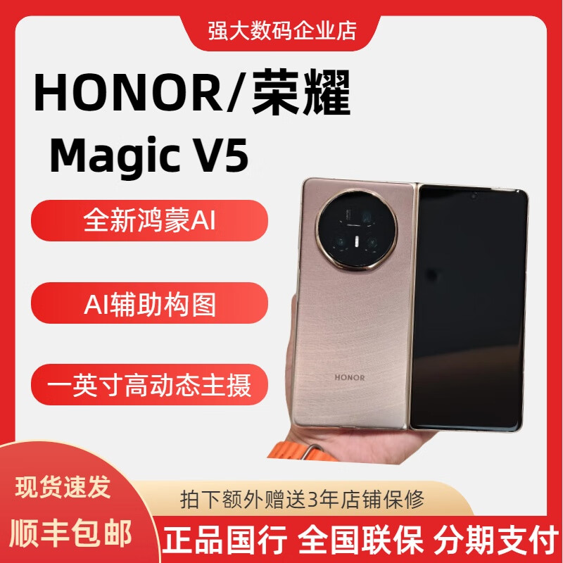 荣耀展机 Magic V5/V3轻薄长续航 青海湖电池 骁龙8至尊AI 折叠屏手机 曙光金【V5】 16G+512G 国行正品|品质无忧