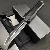 微技术户外便携快开高硬度多功能水果刀便携削皮刀 微技术直跳狼人【双刃黑】