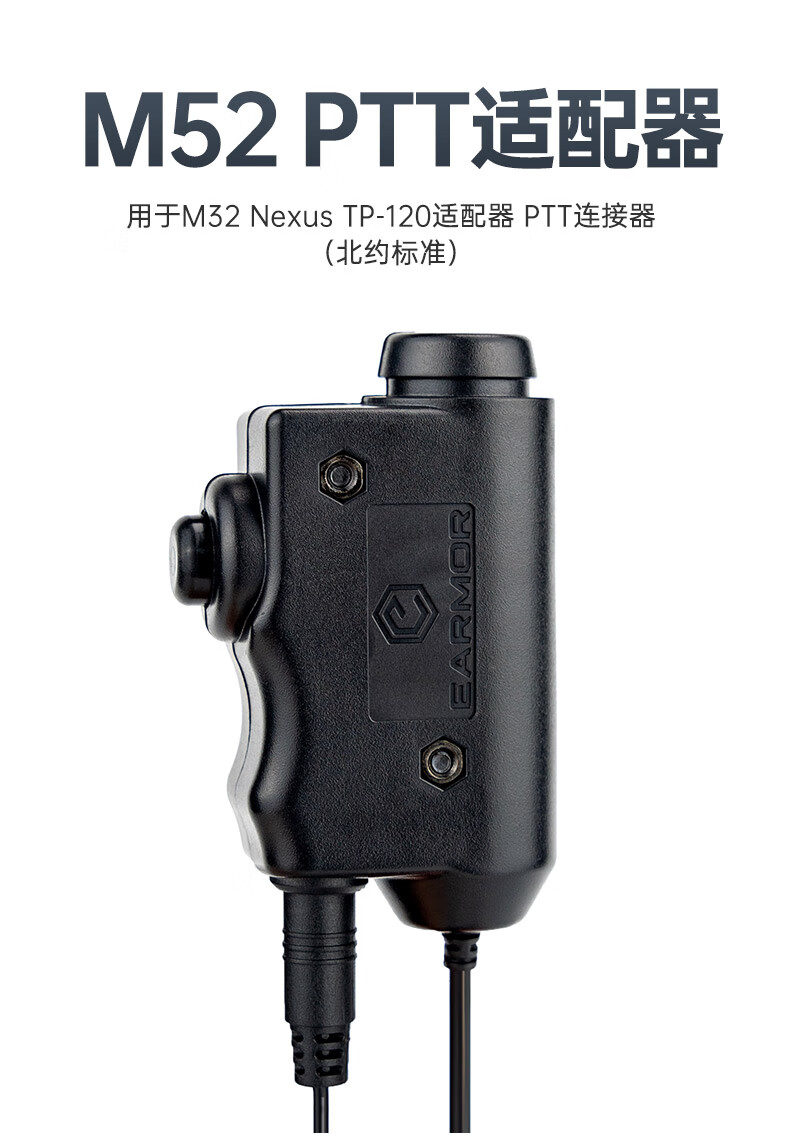 EARMOR耳魔M51/52对讲机PTT按键军事适配器U174军规电台转接战术耳机用 M52 3.5AUX【可连手机电脑)】