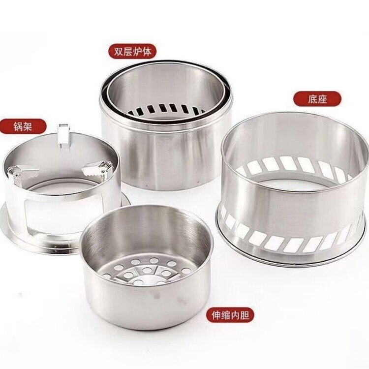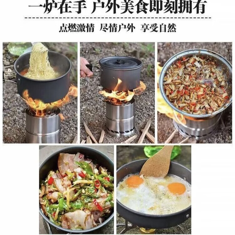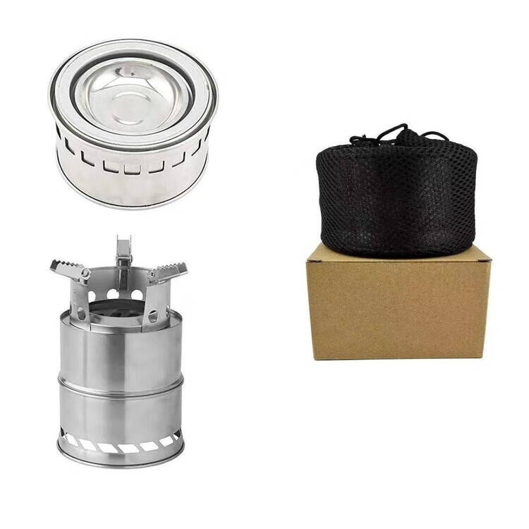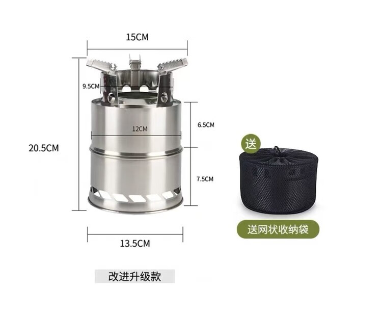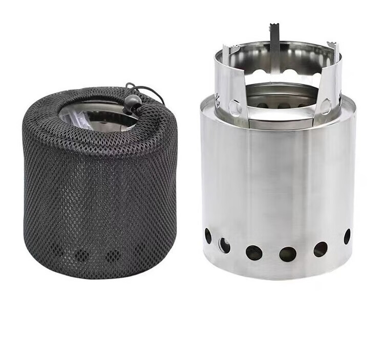 疆屿户外柴火烧水炉野外野餐炉具野炊便携式折叠炉露营装备用品 中号分体柴火炉+收纳袋