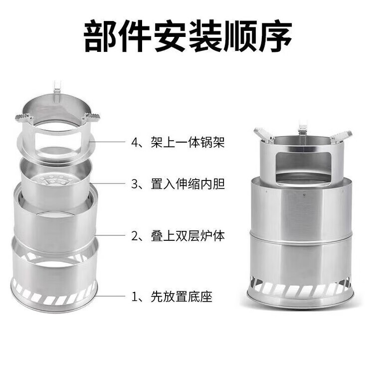 柴火灶节能家用木材气化炉农村无烟便携不锈钢野炊户外柴火炉 柴火炉+鼓风机+大礼包
