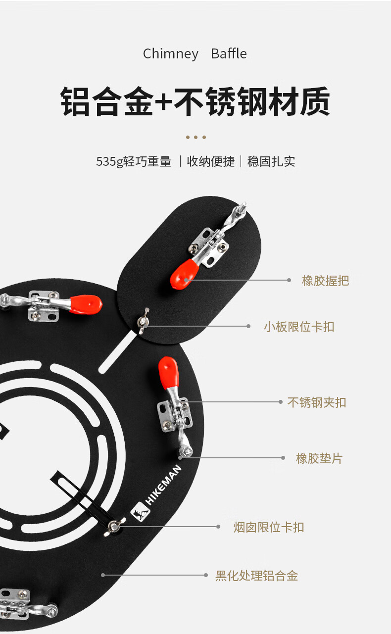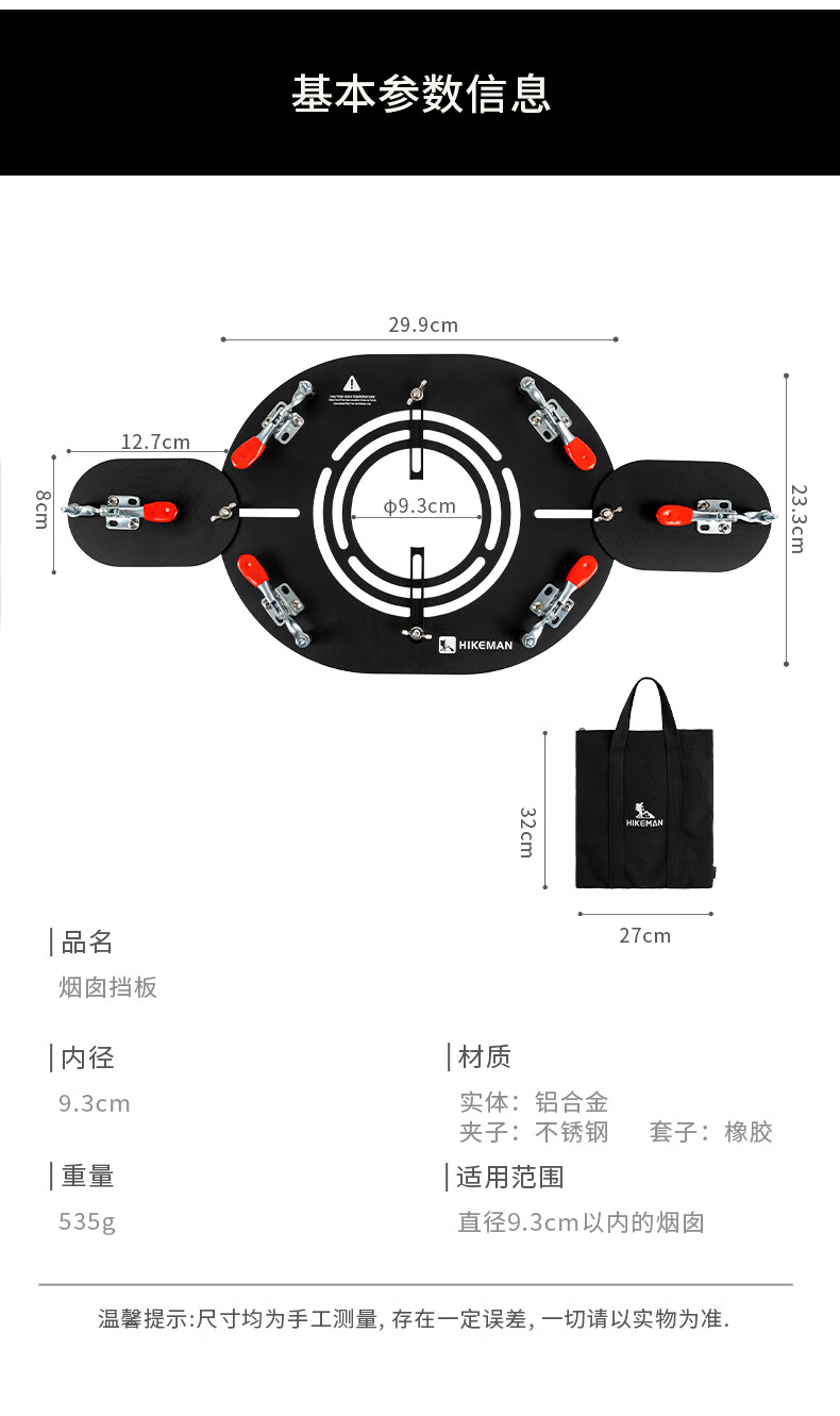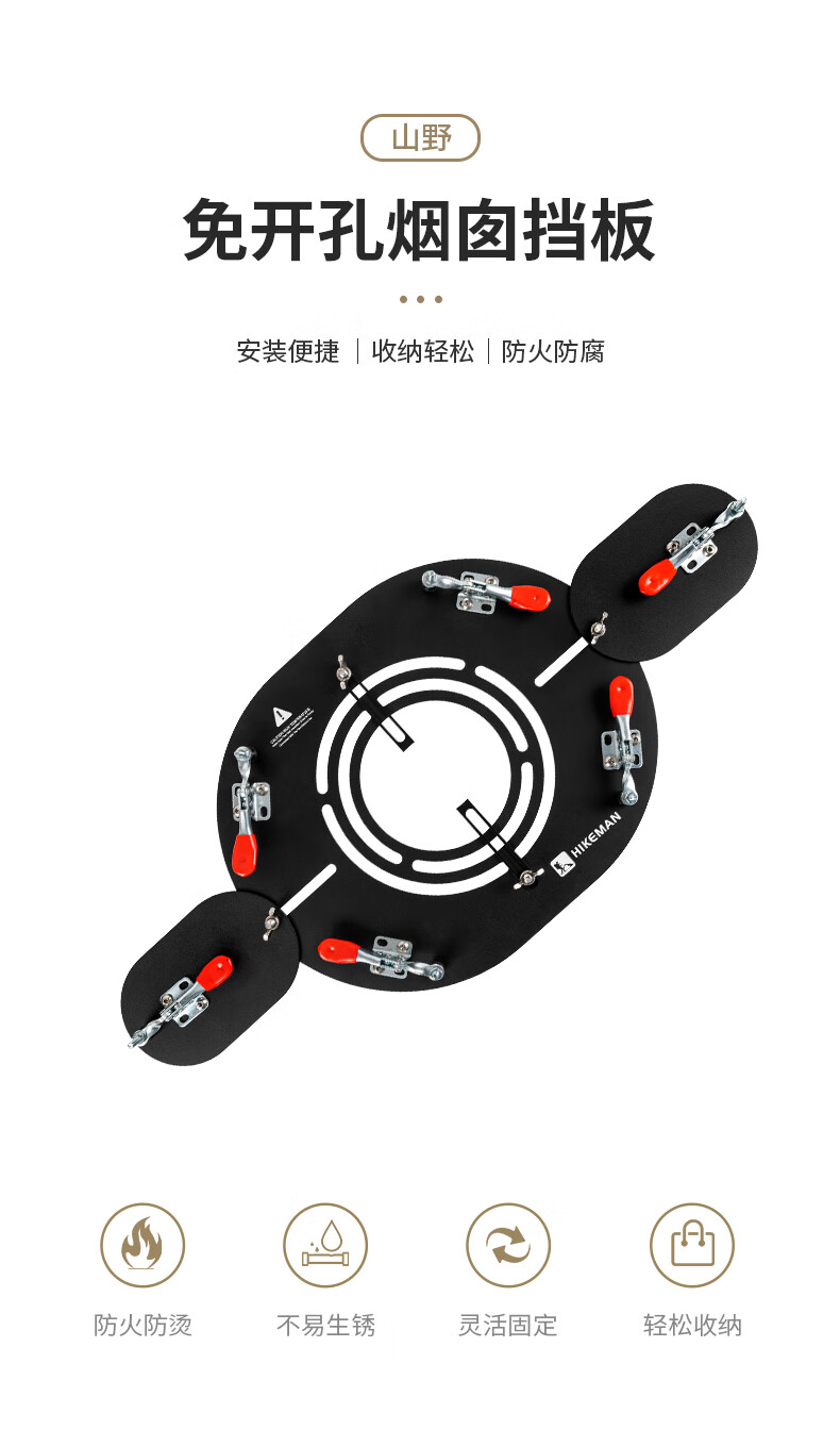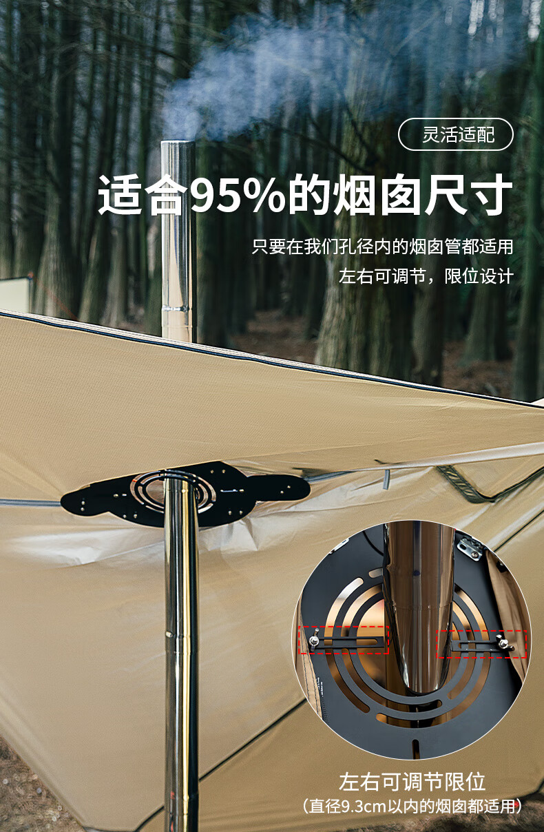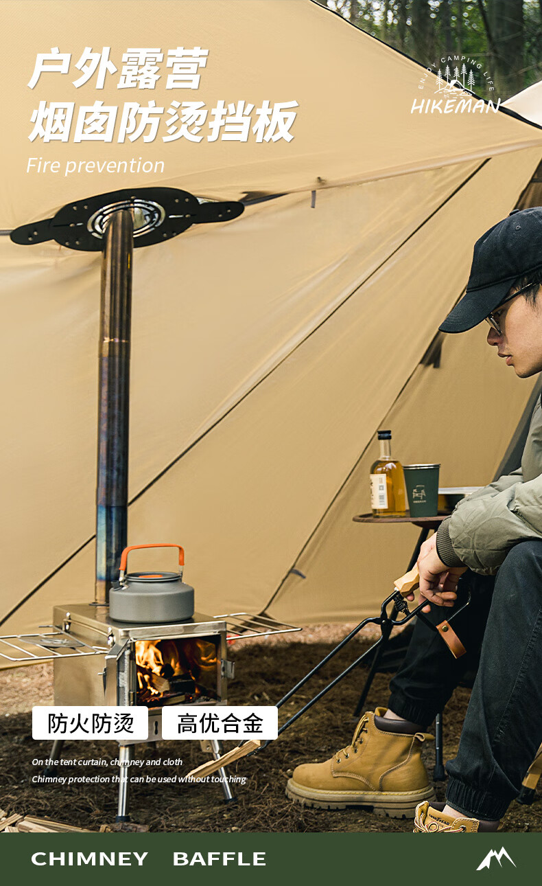 HIKEMAN户外免开孔帐篷烟囱防烫板柴火炉烟管隔热圈铝合金烟筒口配件改装 防烫板-小号【可调节9.3CM以内】+牛津布收纳袋