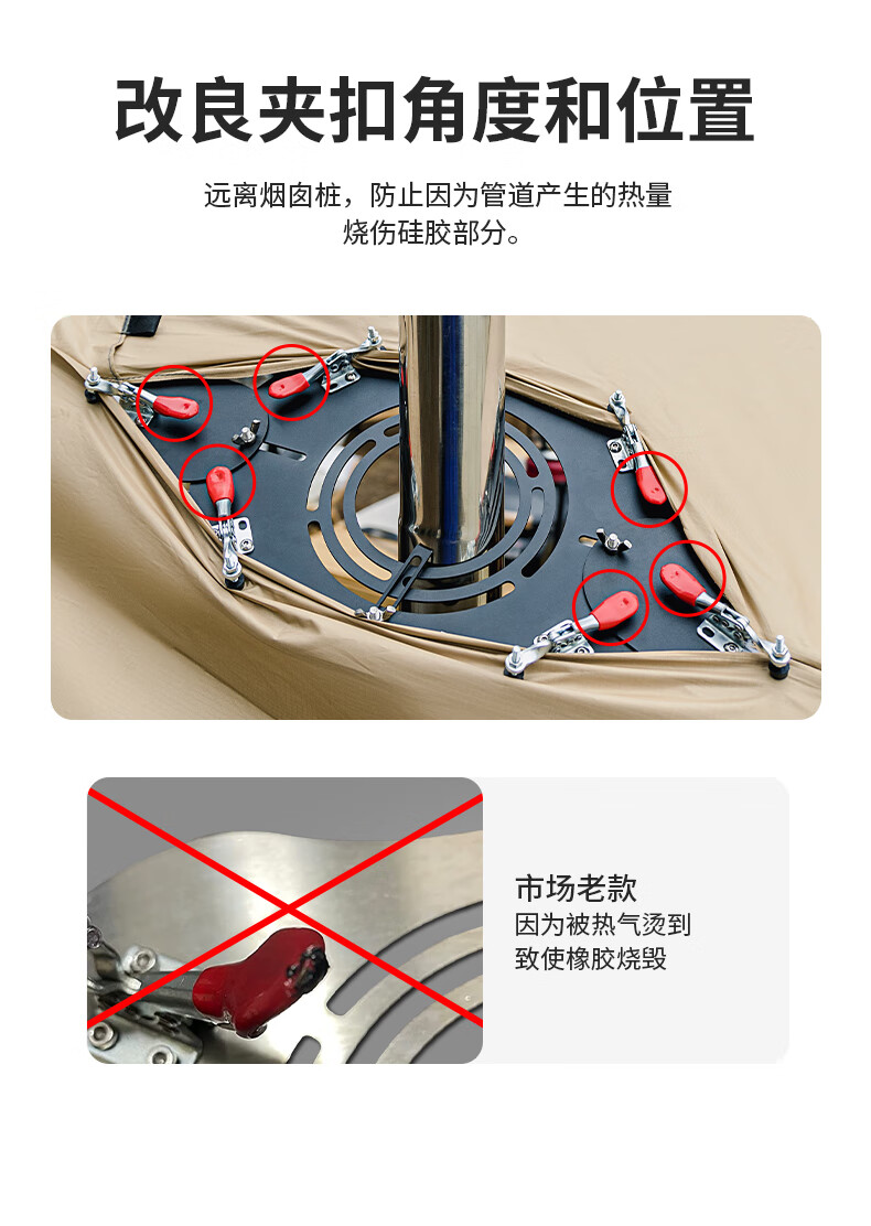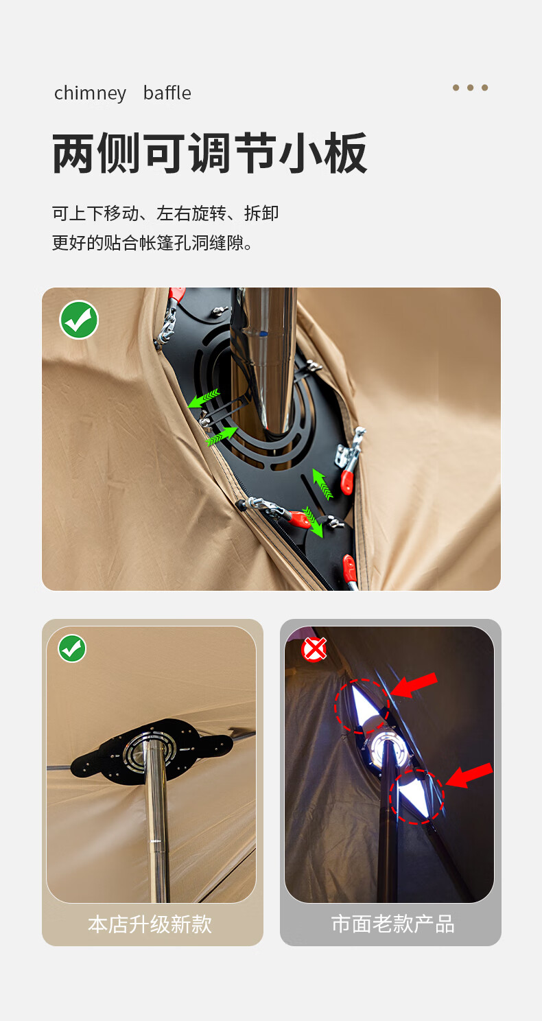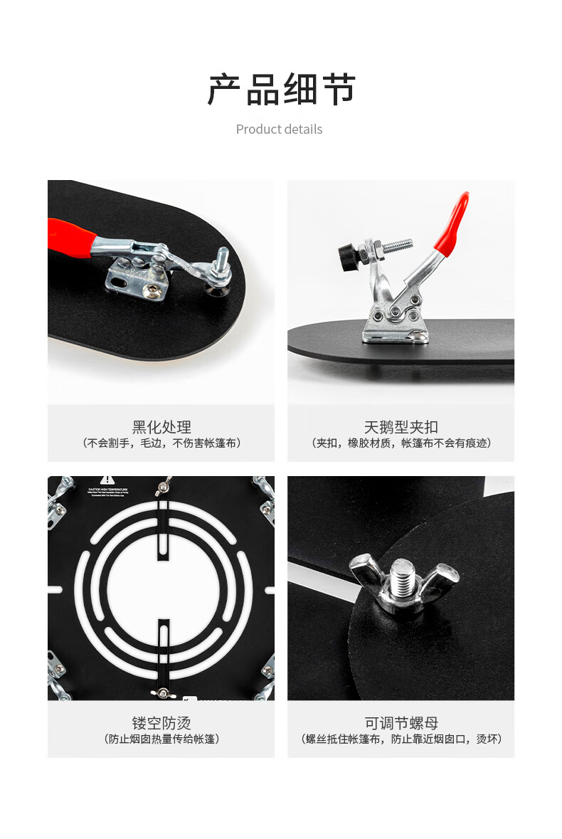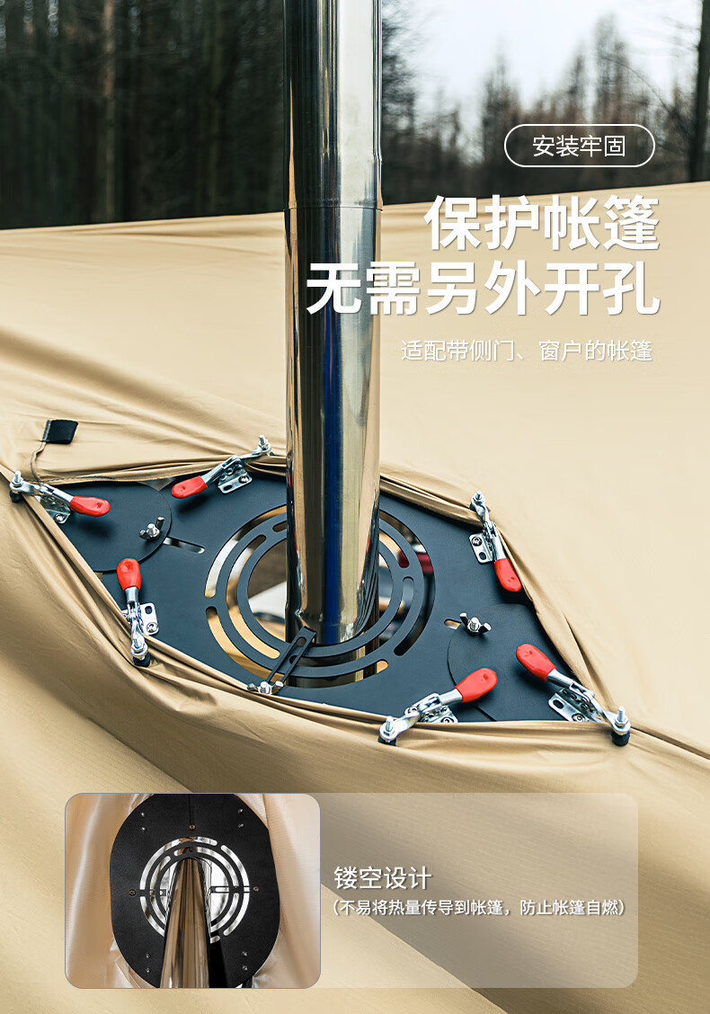 荒野猎人柴火炉不锈钢烟囱排烟管转接头烟筒固定器防烫板网帐篷壁炉配件 二代帐篷防烫板(黑色)