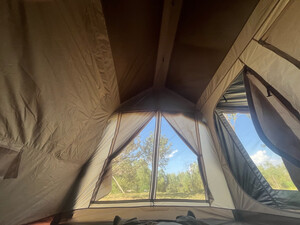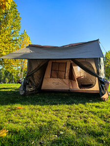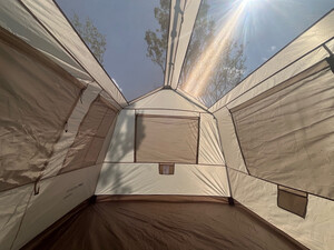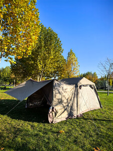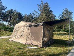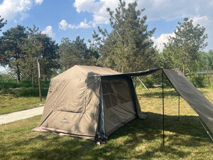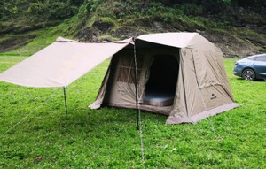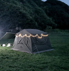 非常好的购物体验,早就想升级一下户外装备,看了好长时间,双11前终于决定下手。看着好像结构挺复杂,但实际上非常好搭建,两个人互相配合,快搭快拆,非常方便。效果很好,秋日里一道靓丽的风景。不过,想要实现网上所展示的全开效果,还得另外再购买两套天幕杆才能实现哦