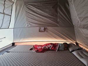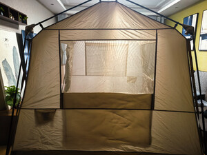 在客厅里搭了一下内帐,空间很足,挑高也够,做工质量都很不错。只一点,搭建两分,收纳20分钟(>y<)